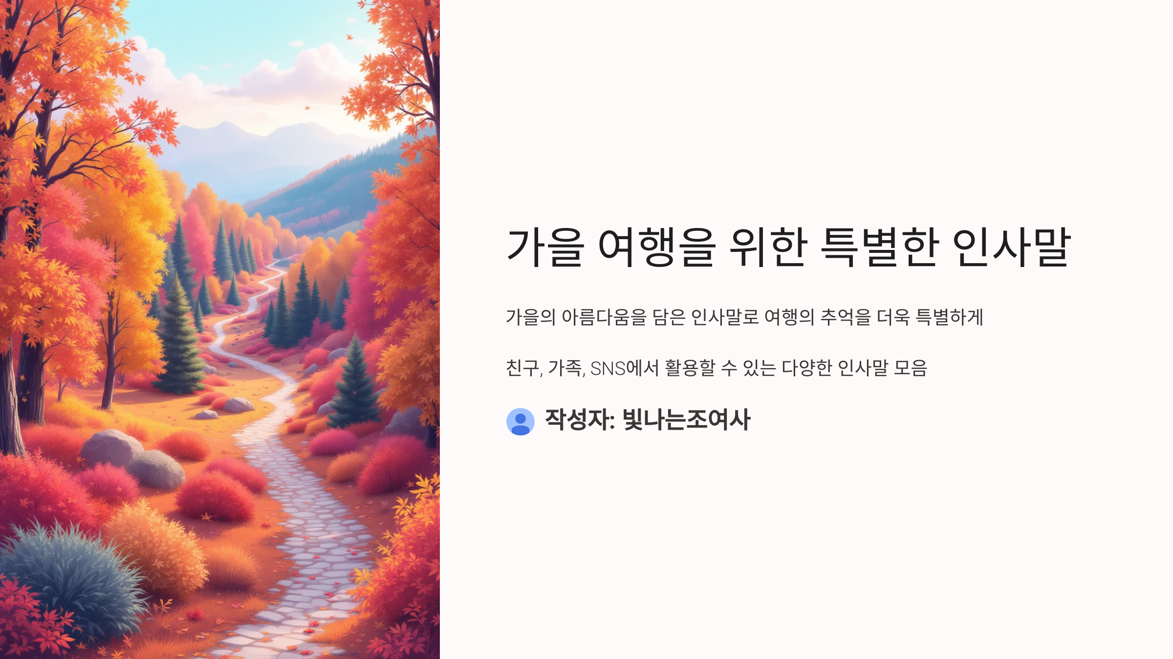 가을의 따뜻함과 낭만을 담은 인사말로 특별한 여행 추억을 만들어 보세요.