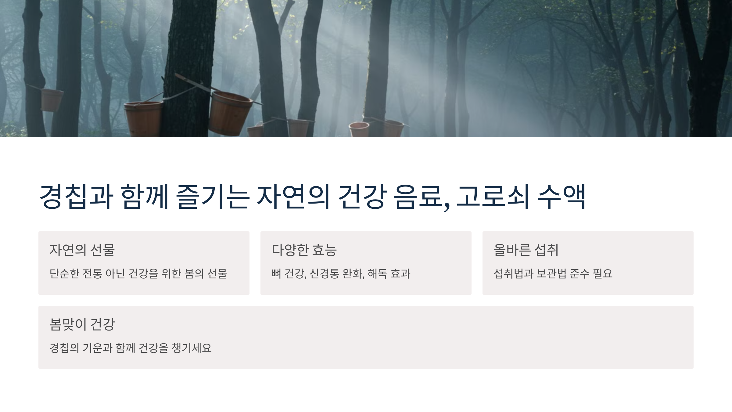 고로쇠 수액 전문 브랜드 홈페이지