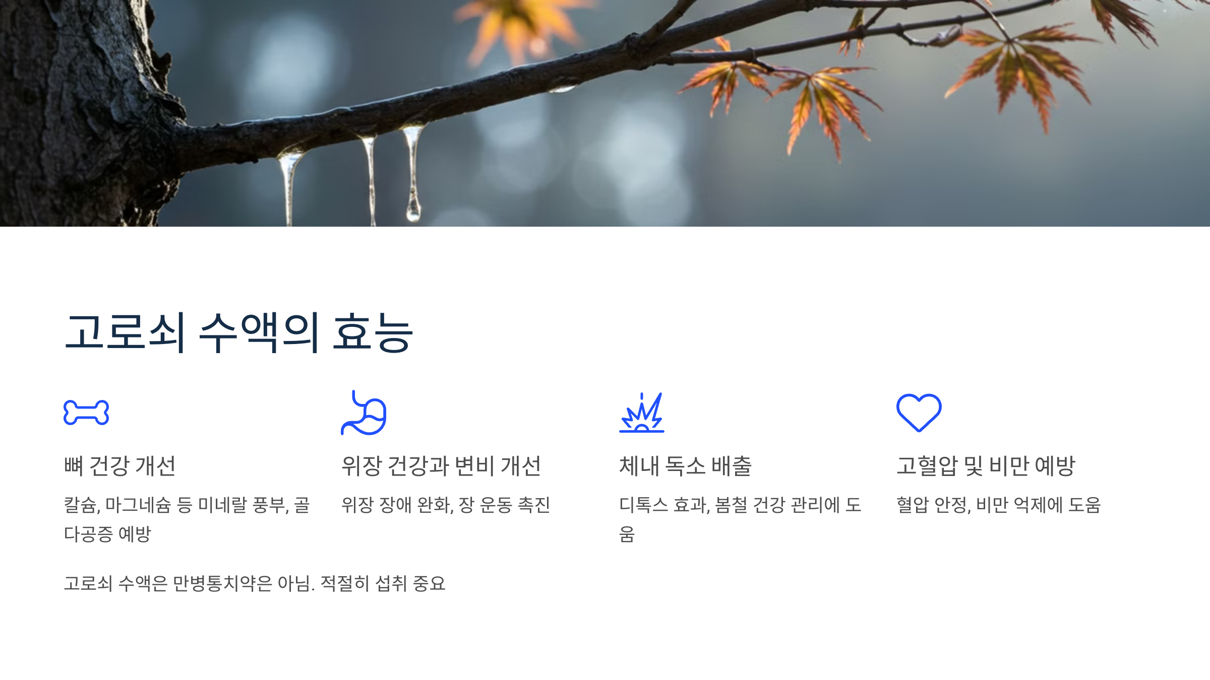 📌 하지만, 고로쇠 수액이 만병통치약은 아닙니다!