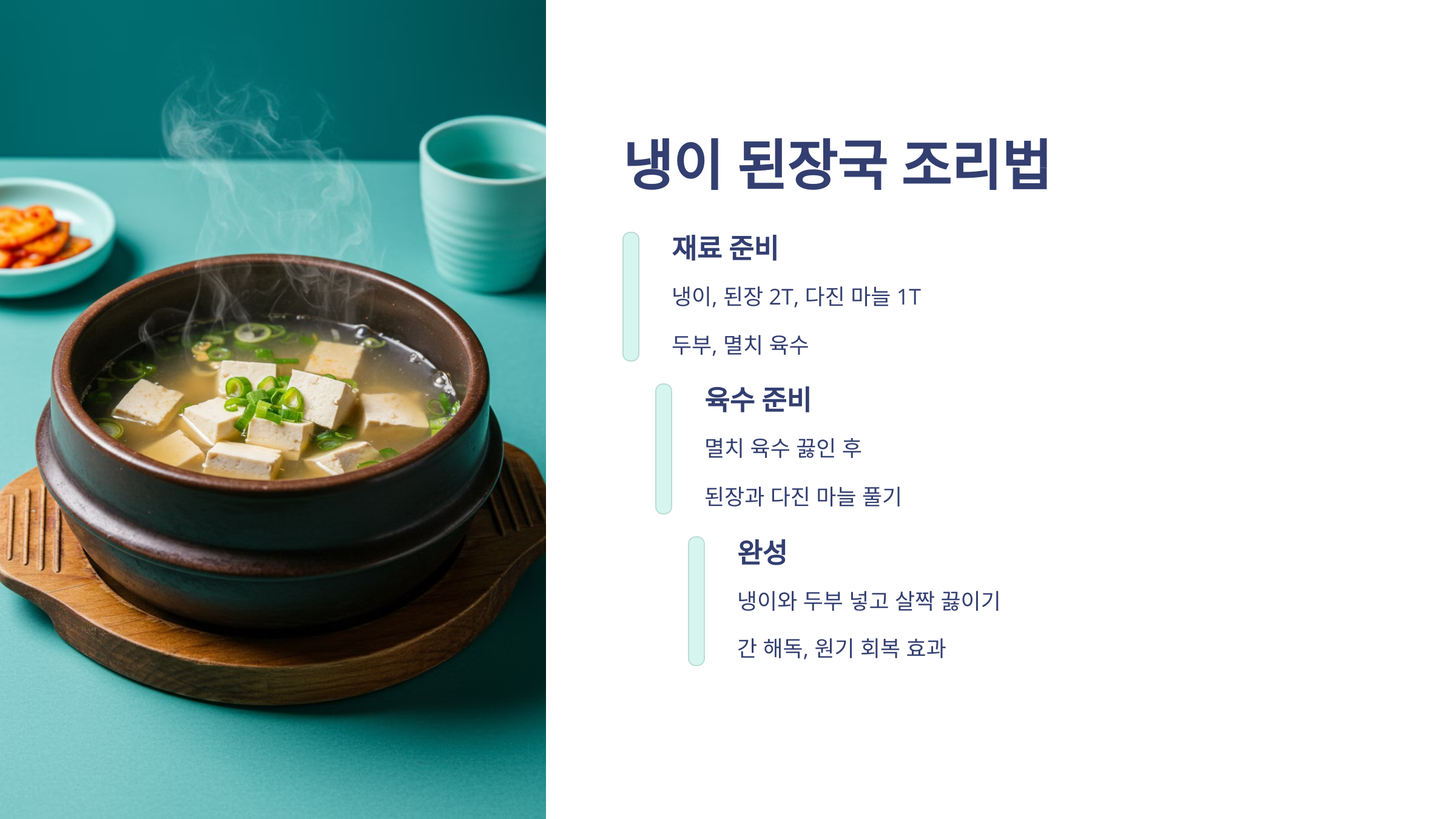 3. 냉이와 두부를 넣고 살짝 끓이면 완성!