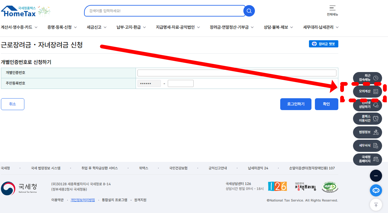 Tip: 신청 전에 국세청 홈택스에서 제공하는 ‘모의계산 서비스’를 통해 본인의 재산 총액을 확인해보는 것이 좋습니다.