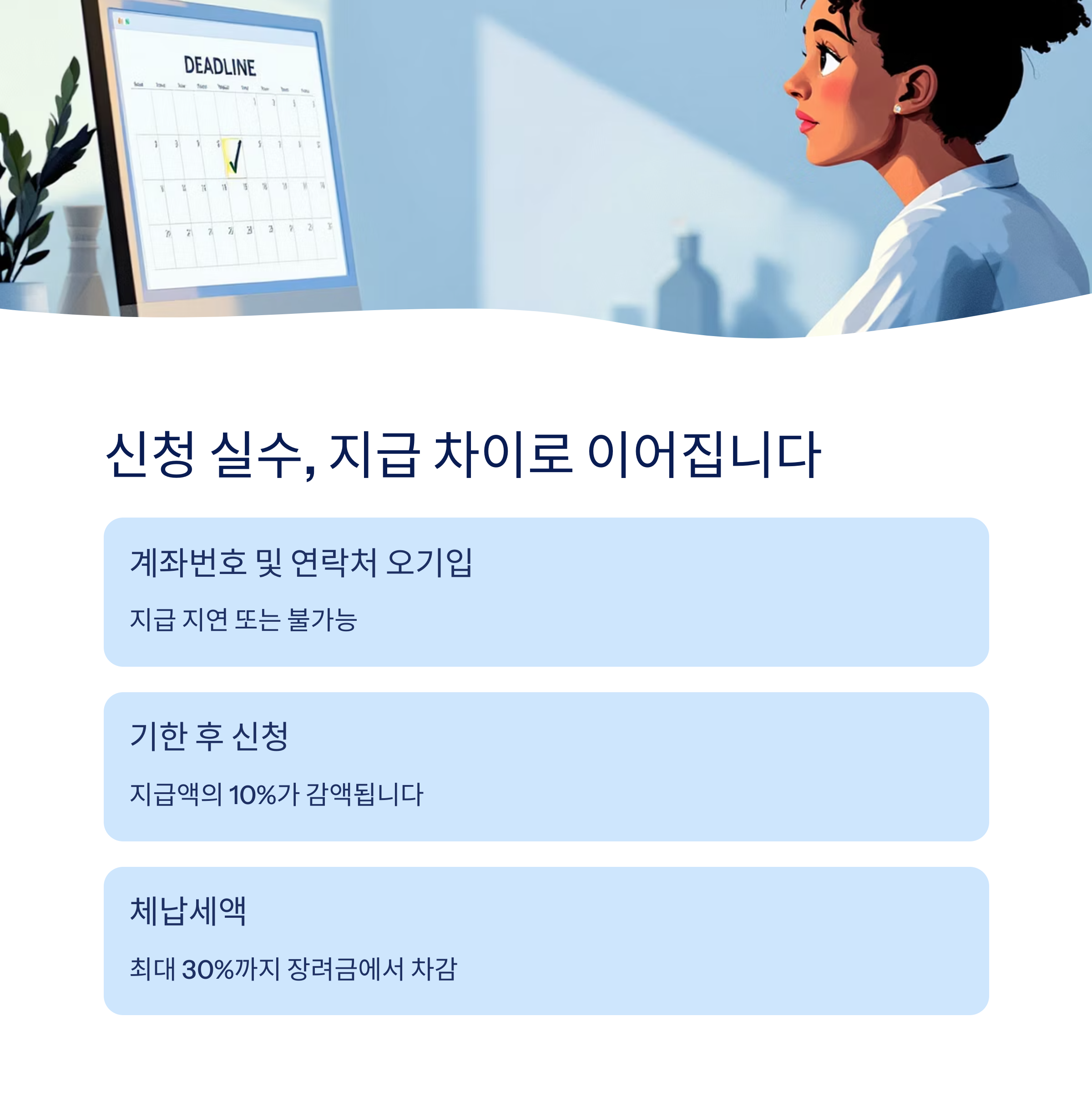 잘못된 계좌번호로 인해 지급이 지연되거나 지급 자체가 안 될 수 있습니다. - 기한 후 신청은 감액 지급