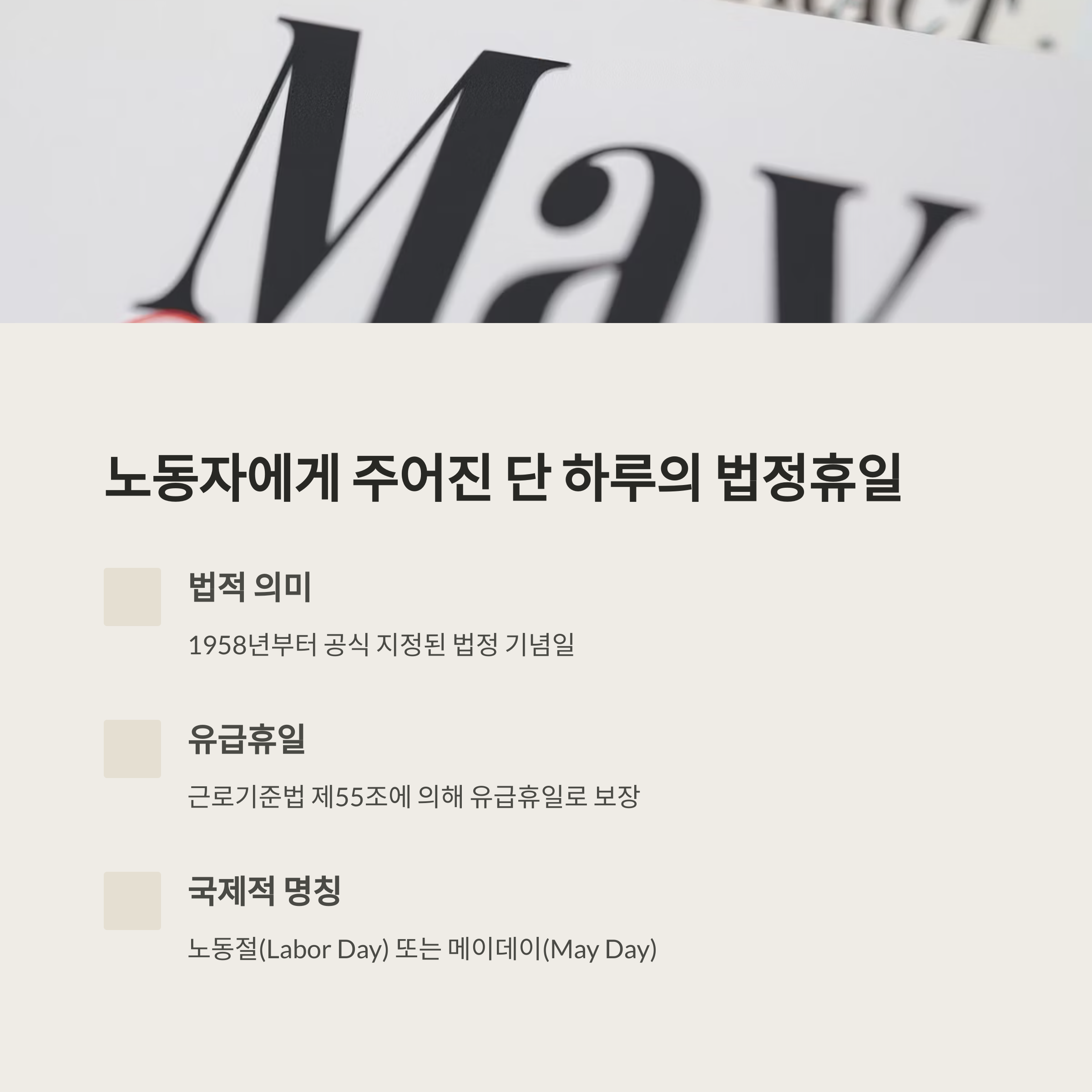 근로자의 날이란? 노동자에게 주어진 단 하루의 법정휴일