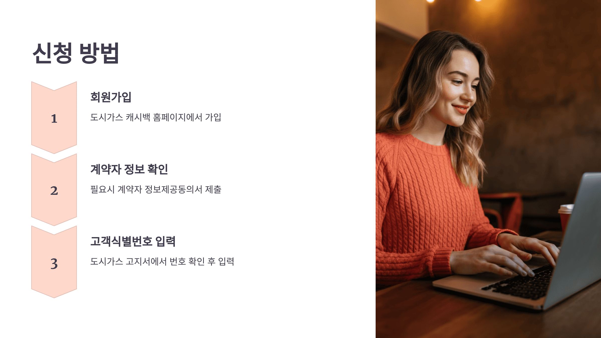 - 회원가입: 도시가스 캐시백 홈페이지에서 회원가입을 진행합니다.