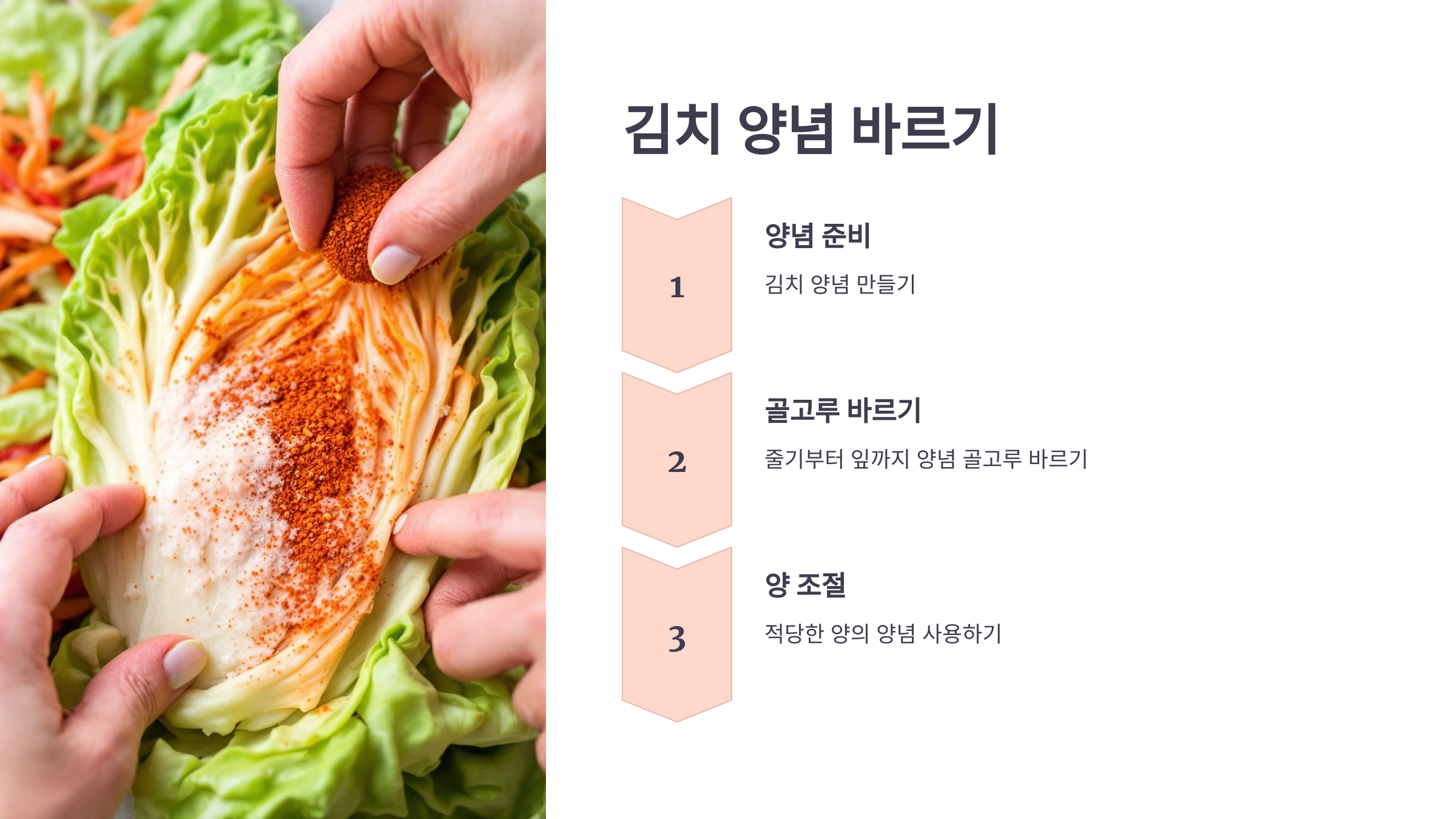 절인 배추를 준비한 후에는 김치 양념을 배추에 골고루 바르는 과정이 필요합니다. 양념을 잘 발라야 김치 속속들이 양념 맛이 배어들어 맛이 좋아집니다. 배추의 줄기 부분부터 잎 부분까지 양념을 골고루 묻히되, 너무 많은 양념을 바르지 않도록 주의하세요. 양념의 비율이 중요하니, 본인의 입맛에 맞게 조절하는 것도 한 가지 팁입니다.