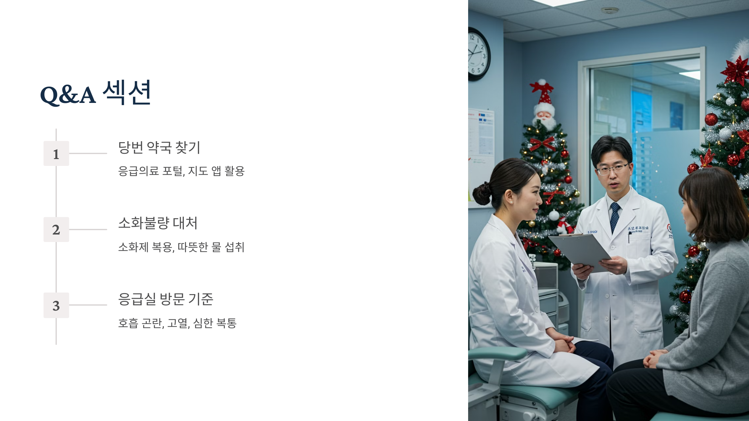 "설날이나 추석 같은 명절에는 가족과 즐거운 시간을 보내는 것도 중요하지만, 건강을 챙기는 일 역시 간과할 수 없습니다. 특히 명절에는 과식, 이동 중 피로, 소화 문제 등이 흔히 발생할 수 있죠. 오늘은 명절 동안 건강을 지키기 위해 알아두어야 할 의사와 약국 정보, 스마트 건강 관리법을 소개합니다. 갑작스러운 증상이나 약이 필요할 때 당황하지 않고 대처할 수 있도록 도움을 드리겠습니다."