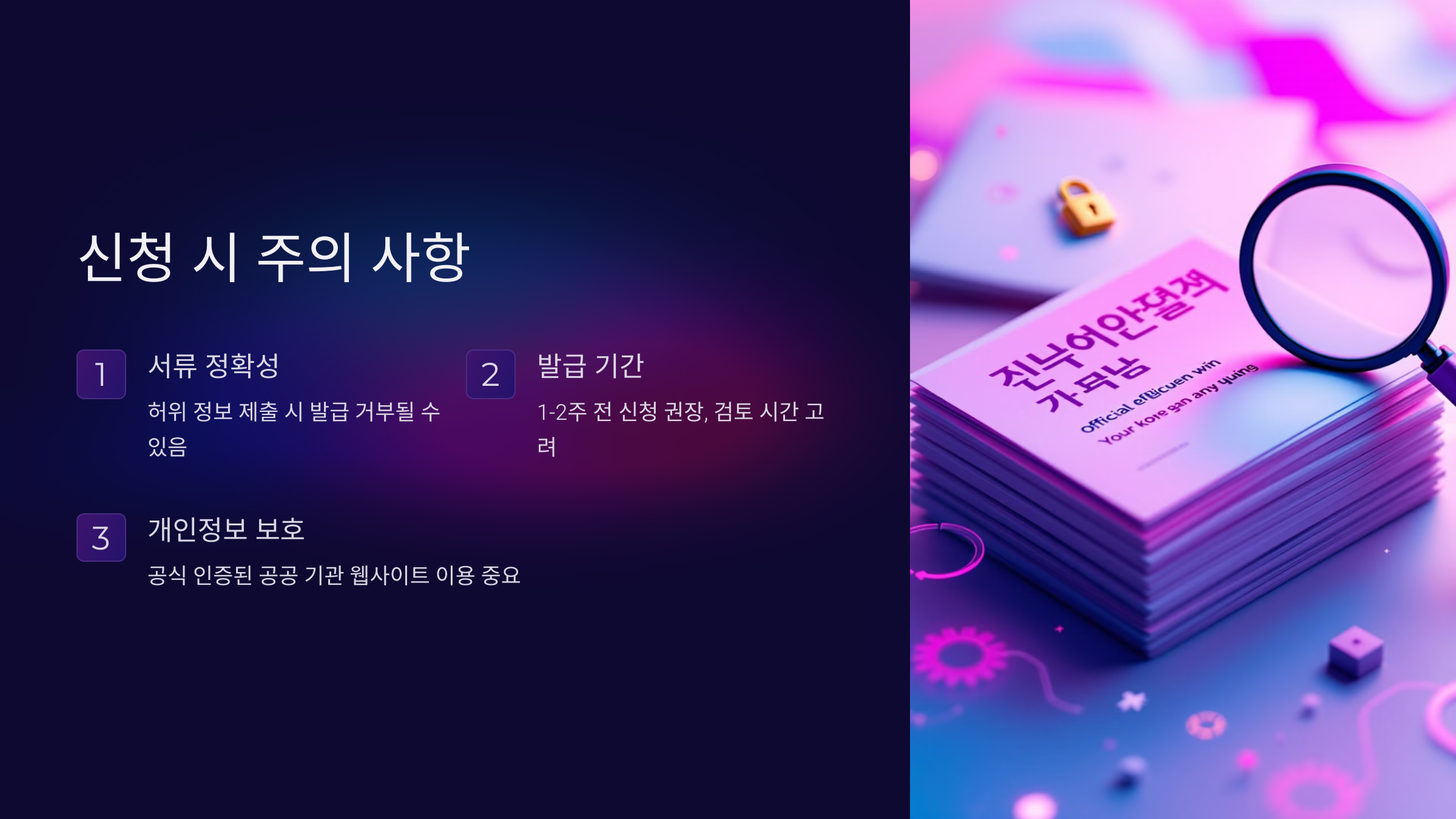 각 지자체나 기관별로 요구하는 조건이 다를 수 있으니, 사전에 해당 기관의 발급 요건을 확인하는 것이 좋습니다.