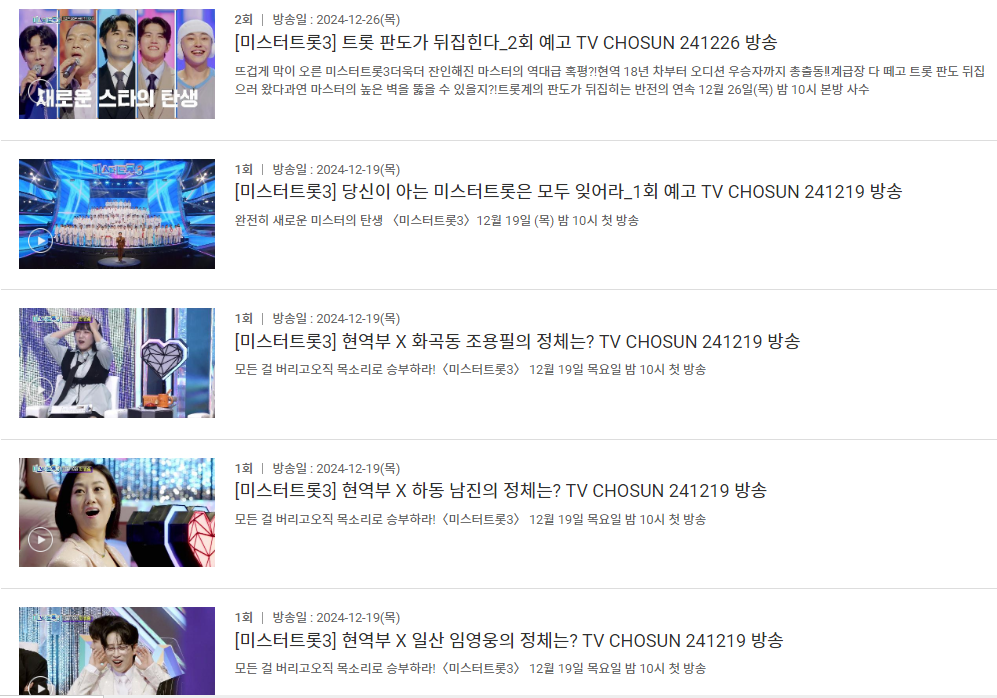 - TV조선 채널에서 주말에 재방송이 진행됩니다: