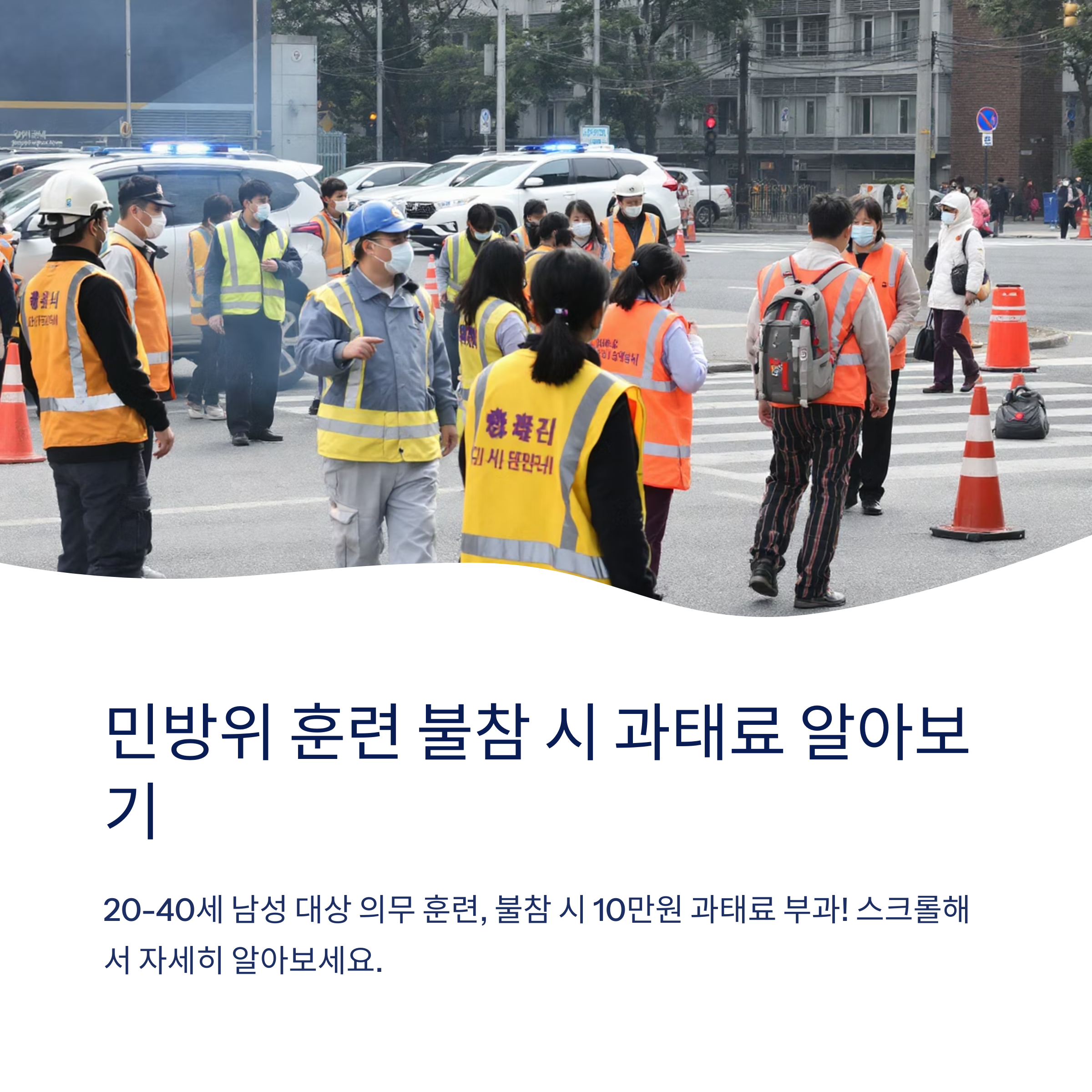 대한민국에서는 「민방위기본법」에 따라 20세부터 40세까지의 남성을 대상으로 민방위 훈련 참여가 의무화되어 있습니다. 훈련에 정당한 사유 없이 불참할 경우 과태료가 부과되며, 2025년 기준으로 그 금액은 10만 원입니다. 이는 민방위 훈련의 중요성을 강조하고, 국민의 안전 의식을 높이기 위한 제도적 장치입니다.