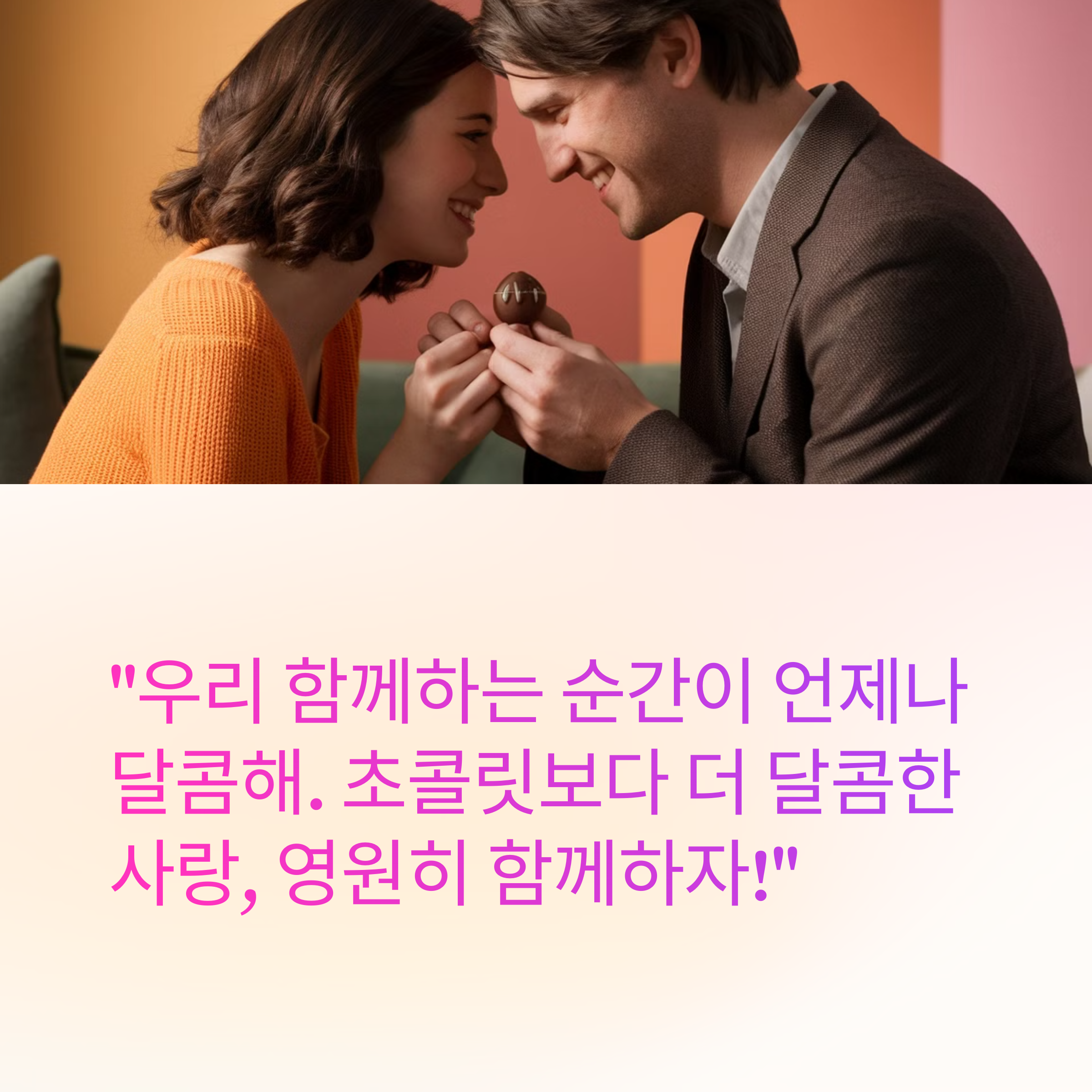 ✔️ "우리 함께하는 순간이 언제나 달콤해. 초콜릿보다 더 달콤한 사랑, 영원히 함께하자!"