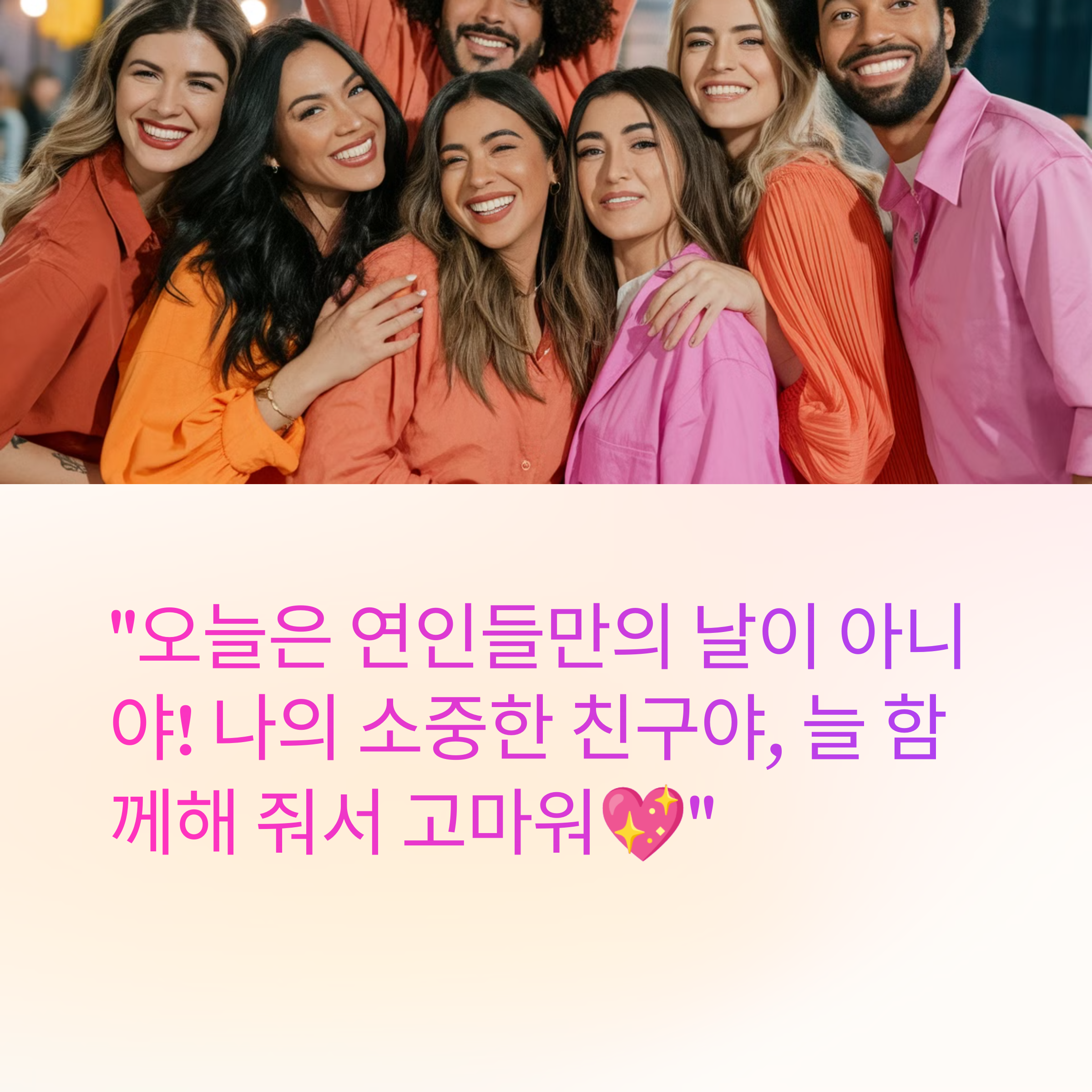 ✔️ "오늘은 연인들만의 날이 아니야! 나의 소중한 친구야, 늘 함께해 줘서 고마워💖"