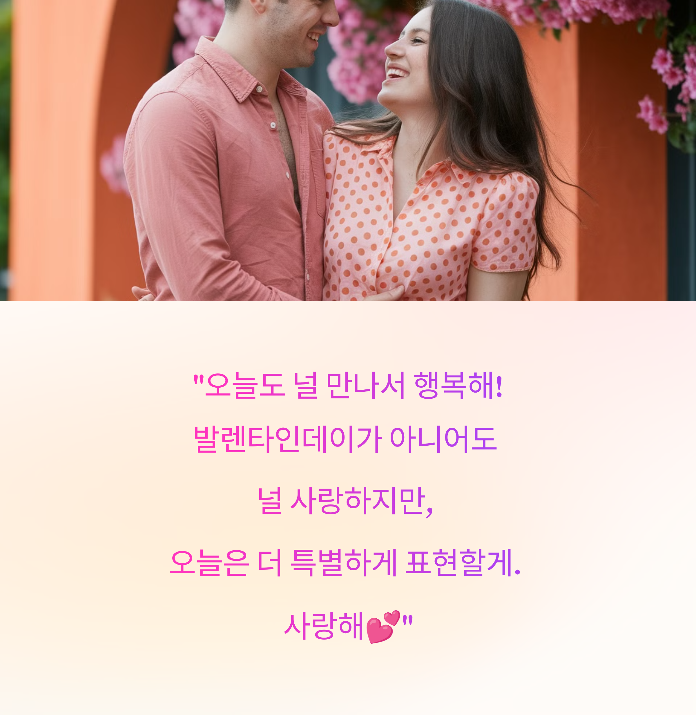 ✔️ "오늘도 널 만나서 행복해! 발렌타인데이가 아니어도 널 사랑하지만, 오늘은 더 특별하게 표현할게. 사랑해💕"