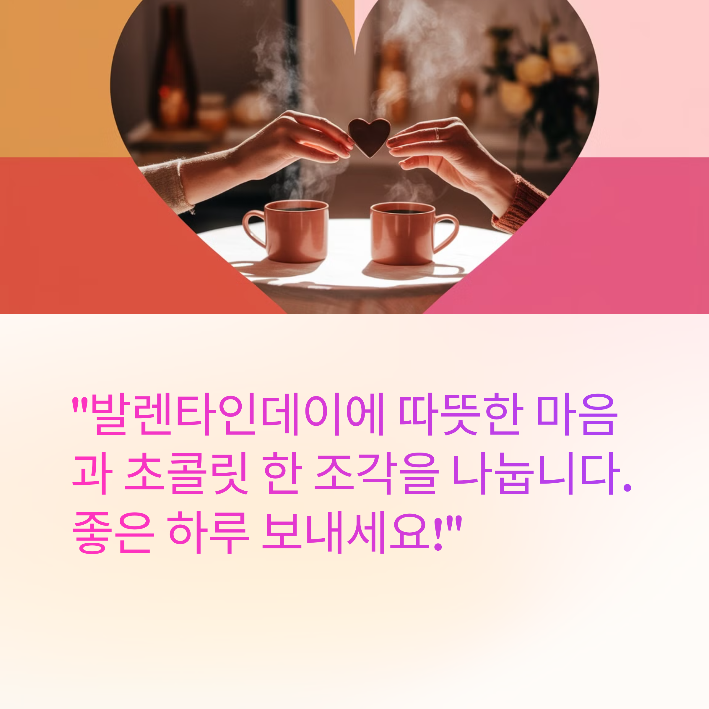 ✔️ "발렌타인데이에 따뜻한 마음과 초콜릿 한 조각을 나눕니다. 좋은 하루 보내세요!"