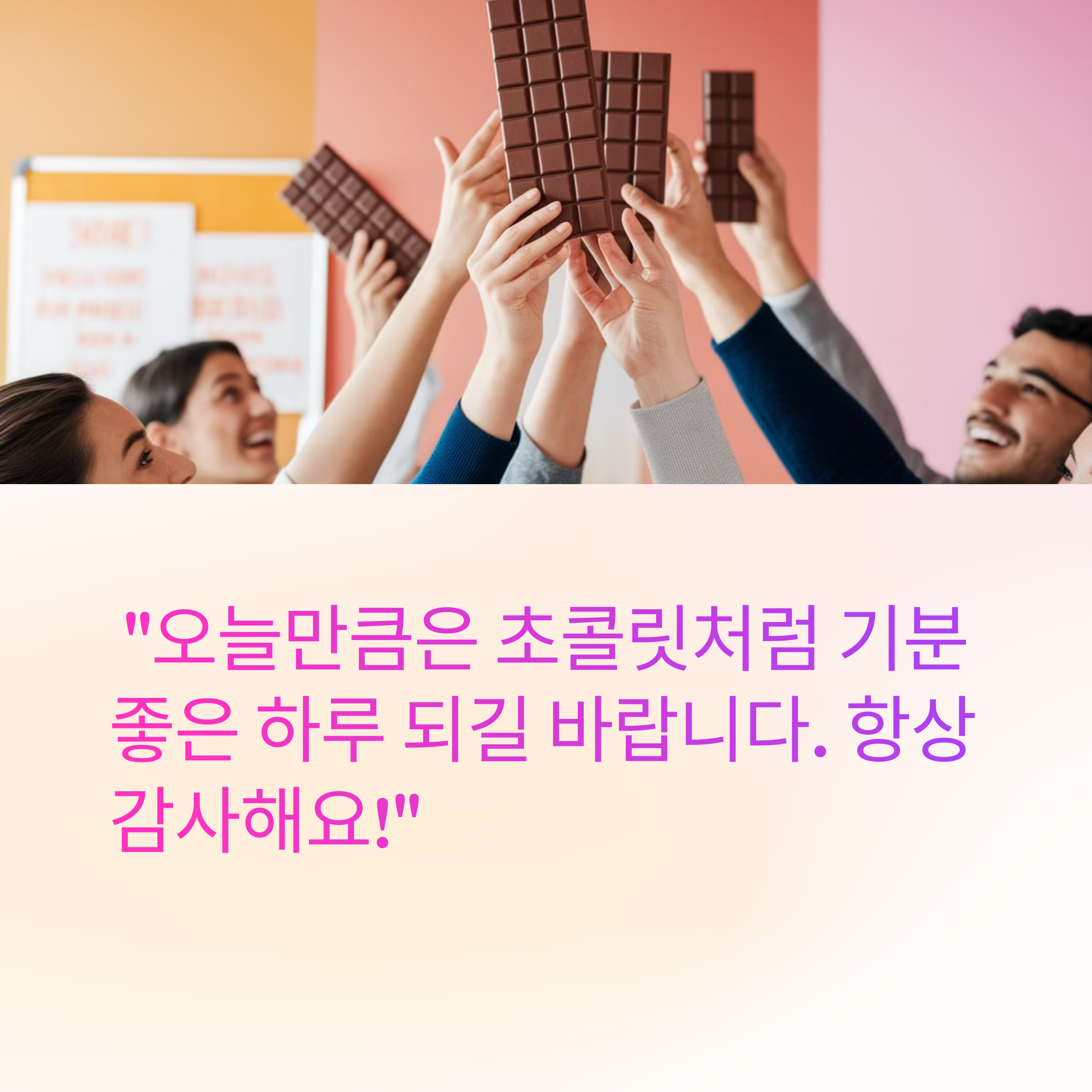 ✔️ "오늘만큼은 초콜릿처럼 기분 좋은 하루 되길 바랍니다. 항상 감사해요!"