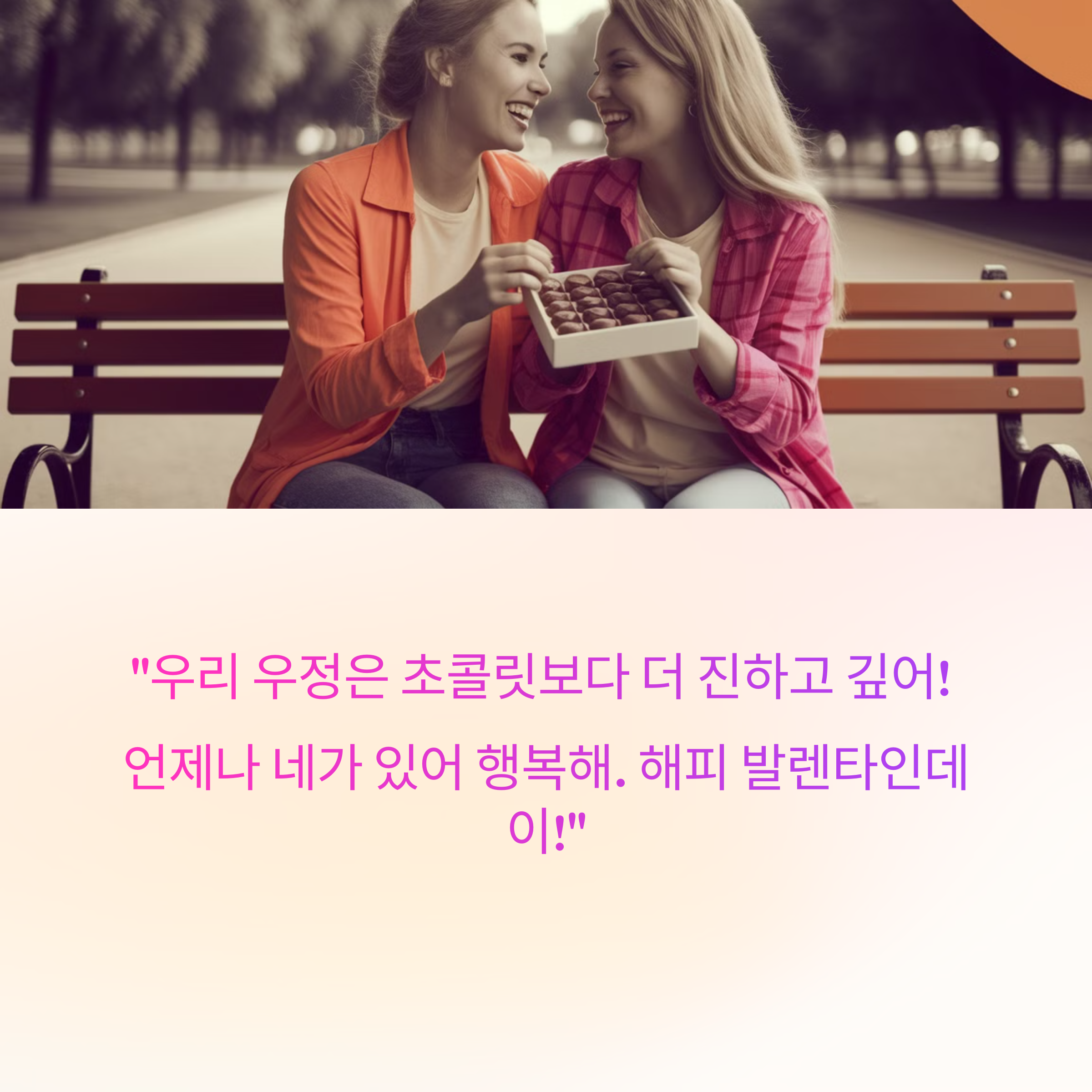 ✔️ "너만 있으면 난 외롭지 않아! 초콜릿보다 든든한 우정을 나누는 우리, 오래오래 함께하자!"