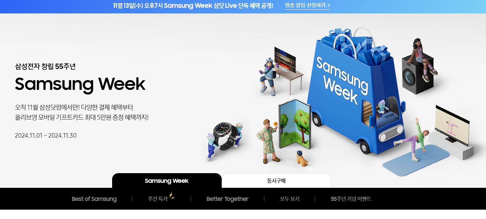 오늘은 2024년 11월 1일부터 30일까지 진행되는 '코리아세일페스타'에서 삼성전자가 제공하는 다양한 품목과 할인 혜택에 대해 알아보겠습니다. 이 기회를 통해 가전제품부터 모바일 기기까지 합리적인 가격에 구매할 수 있는 방법을 소개해드릴게요.