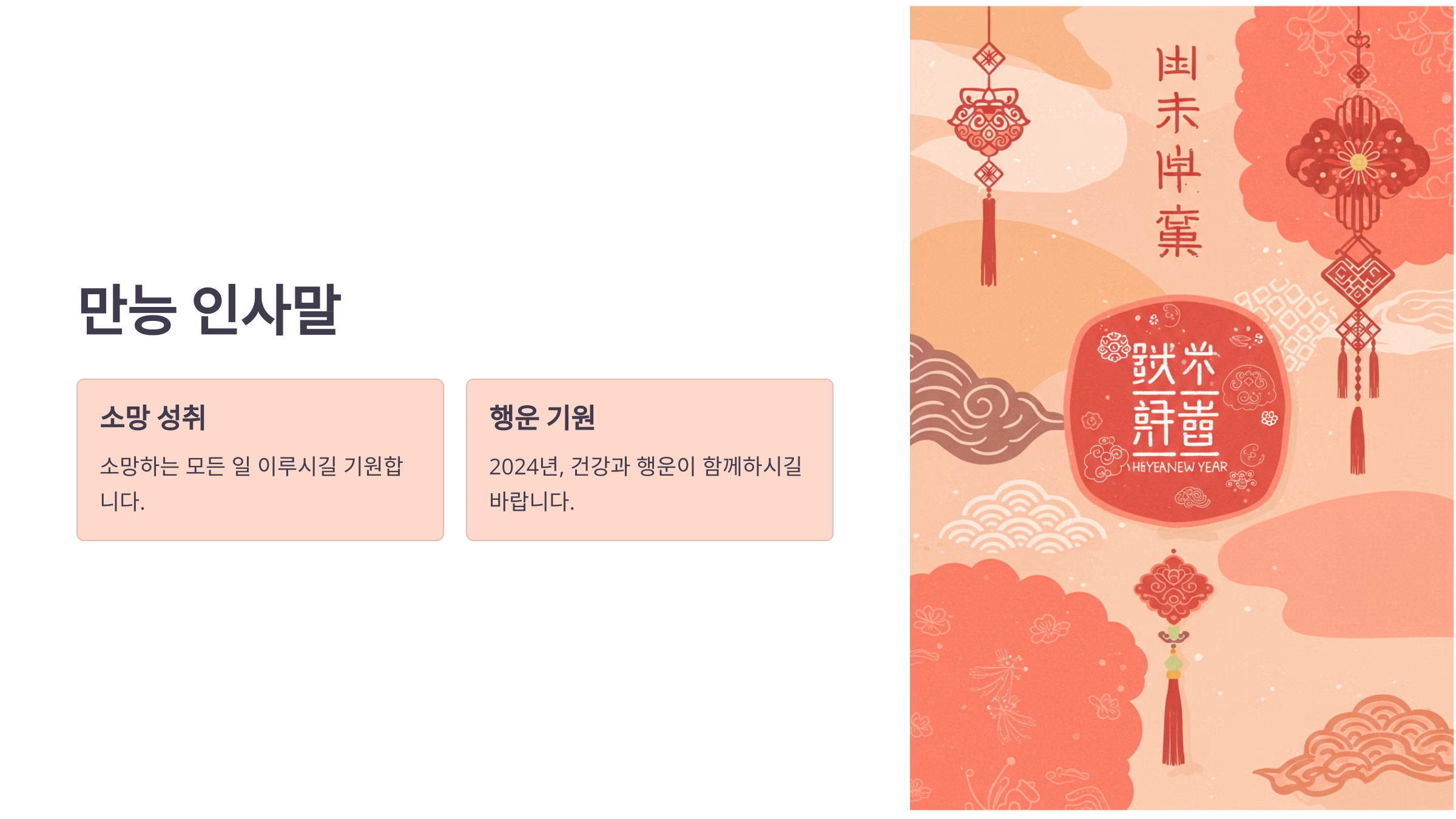 - "2024년, 건강과 행운이 함께하시길 바랍니다. 새해 복 많이 받으세요!"