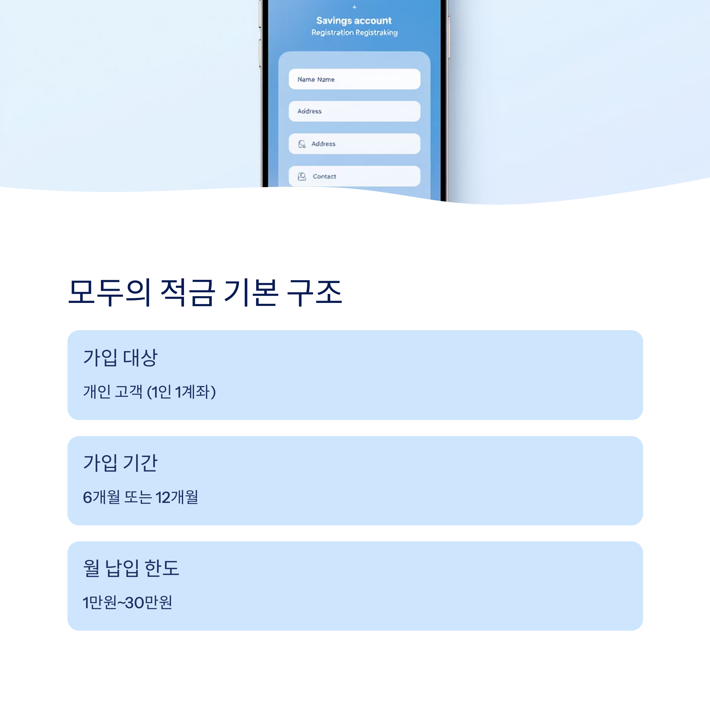누구나 자유롭게 매월 일정 금액을 적립할 수 있으며, 간편하게 모바일 앱이나 인터넷뱅킹으로 가입 가능해 접근성이 매우 뛰어납니다.