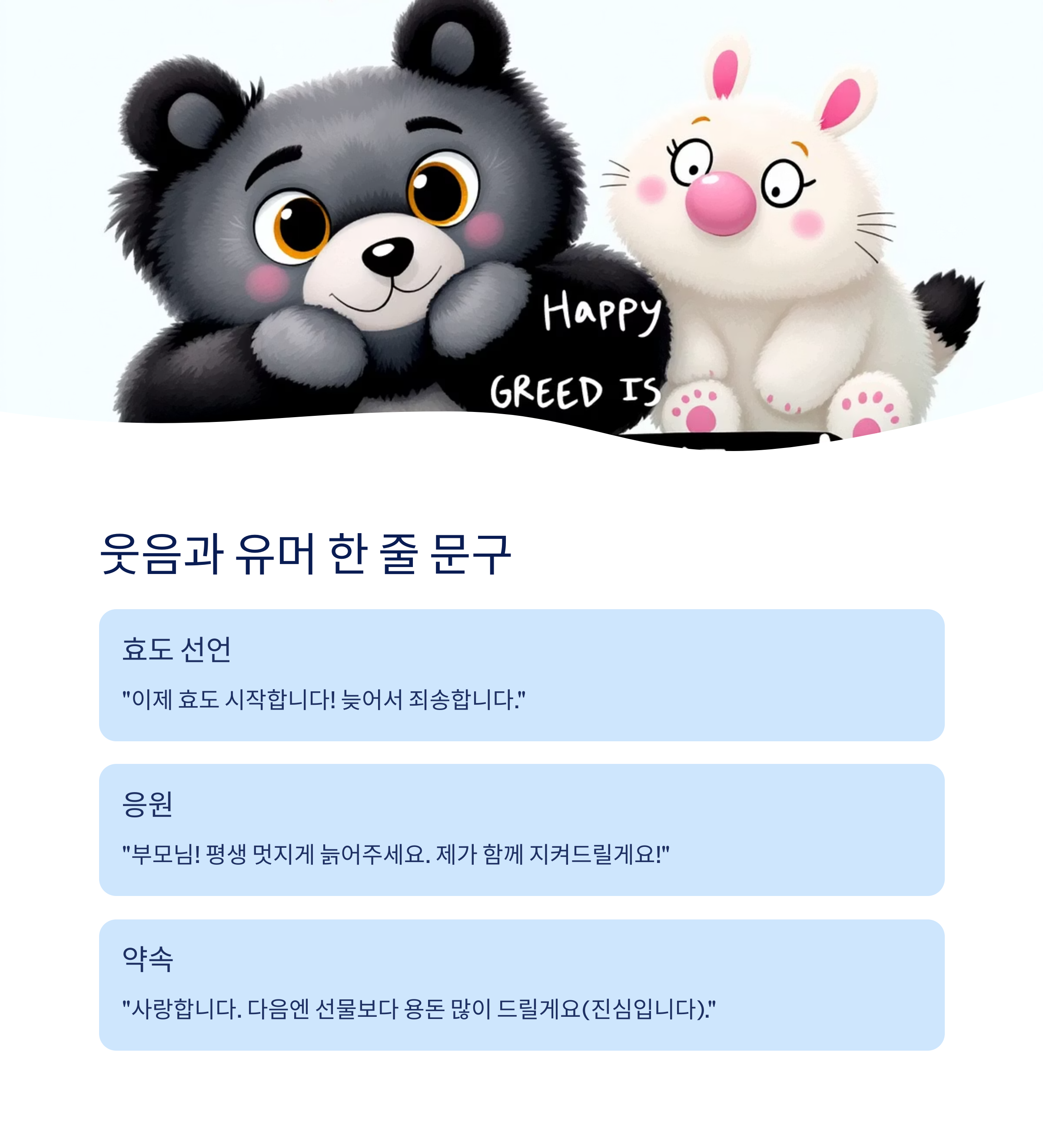 - “이제 효도 시작합니다! 늦어서 죄송합니다, 하지만 마음만은 진심이에요.”