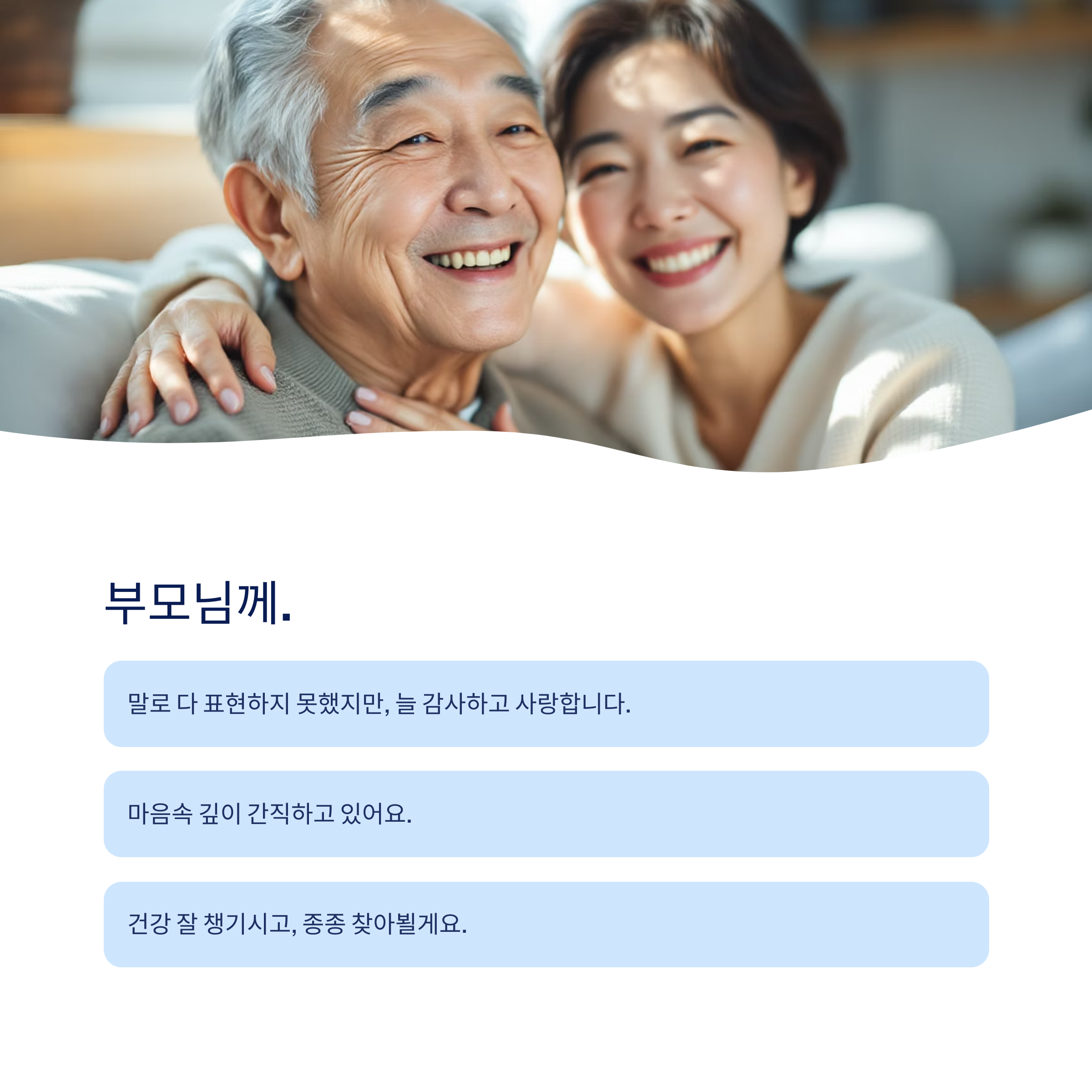 선물도 중요하지만, 마음을 담은 말 한마디가 부모님에게는 그 어떤 고가의 선물보다도 값진 기억으로 남습니다.