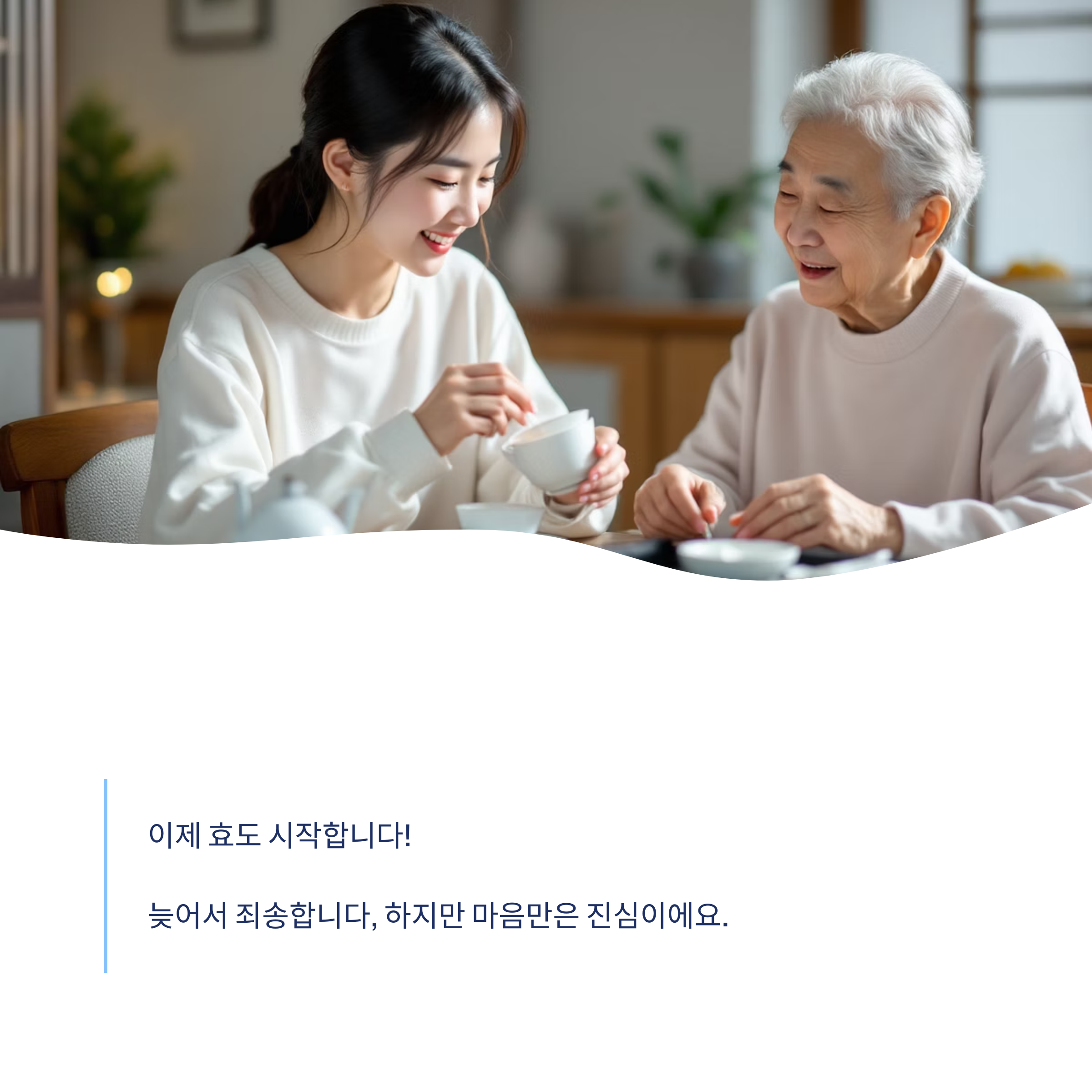 • “이제 효도 시작합니다! 늦어서 죄송합니다, 하지만 마음만은 진심이에요.”