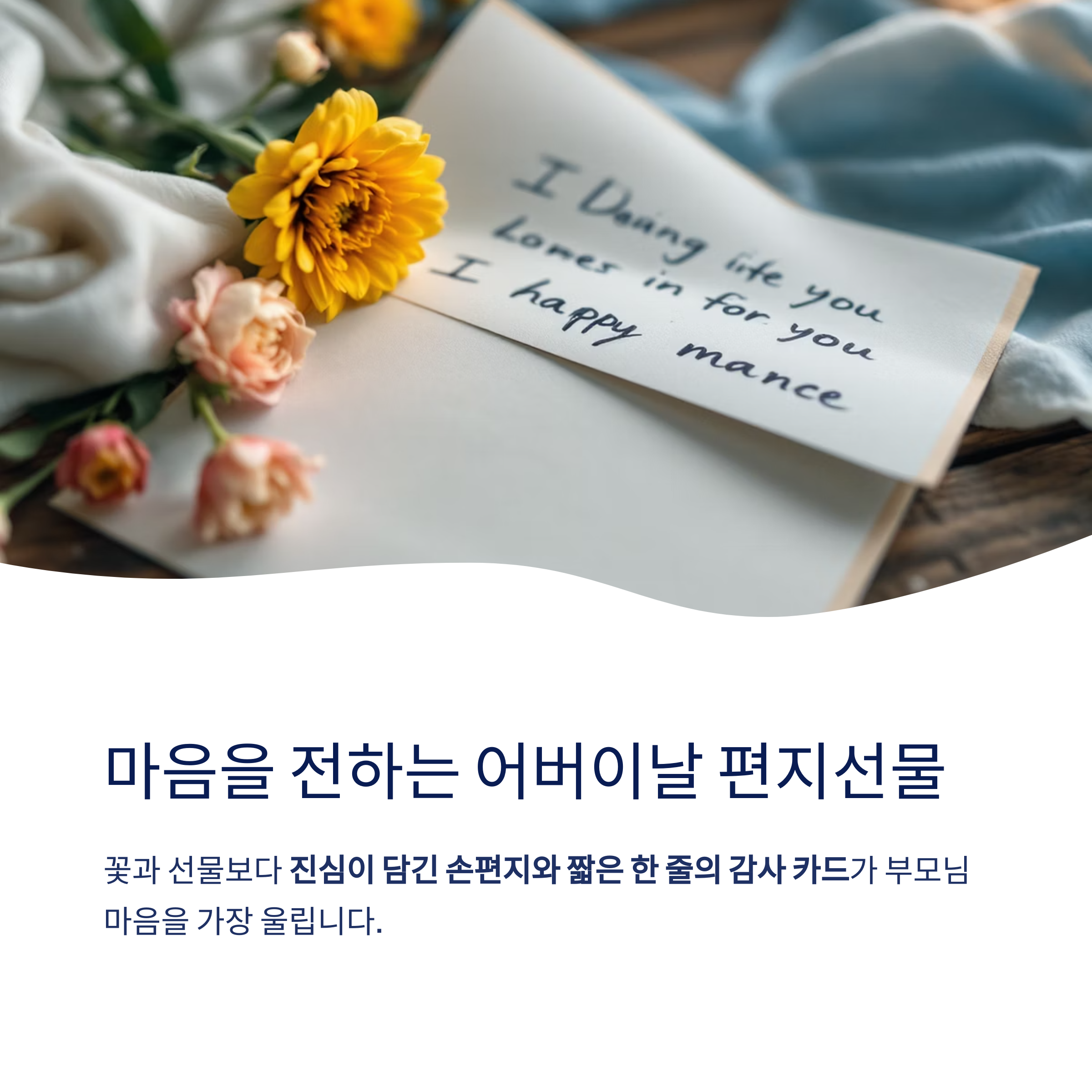 하지만 무엇보다 부모님 마음을 가장 울리는 선물은 진심이 담긴 손편지와 짧은 한 줄의 감사 카드입니다.