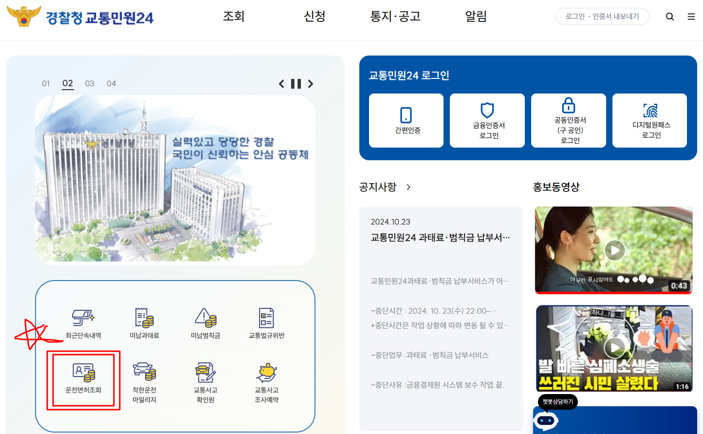 경찰청 교통민원24 혹은 이파인으로 운전면허정보 조회