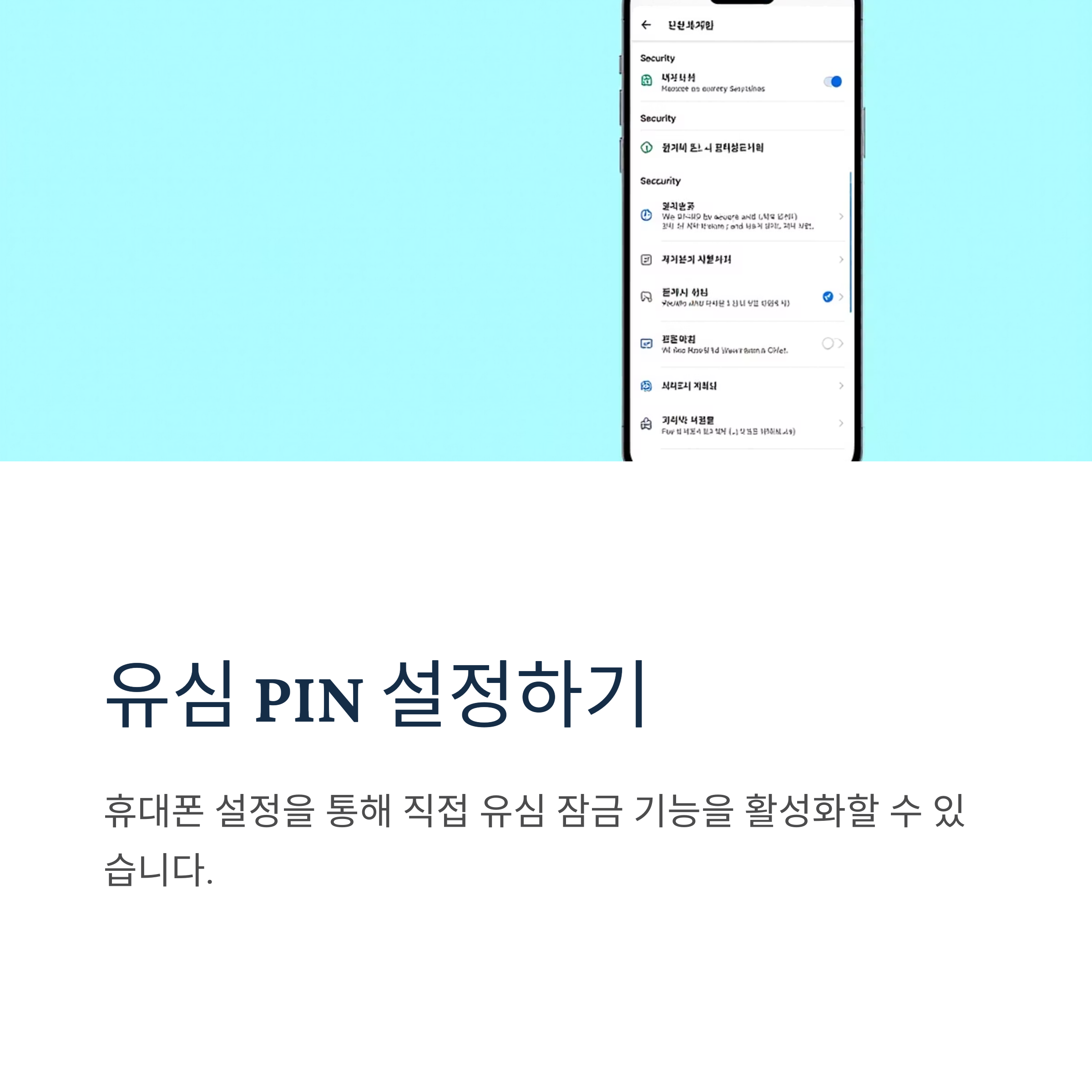 📌 주의: 핀 번호는 3회 연속 오류 시 PUK 코드가 필요하니 신중히 설정하세요.