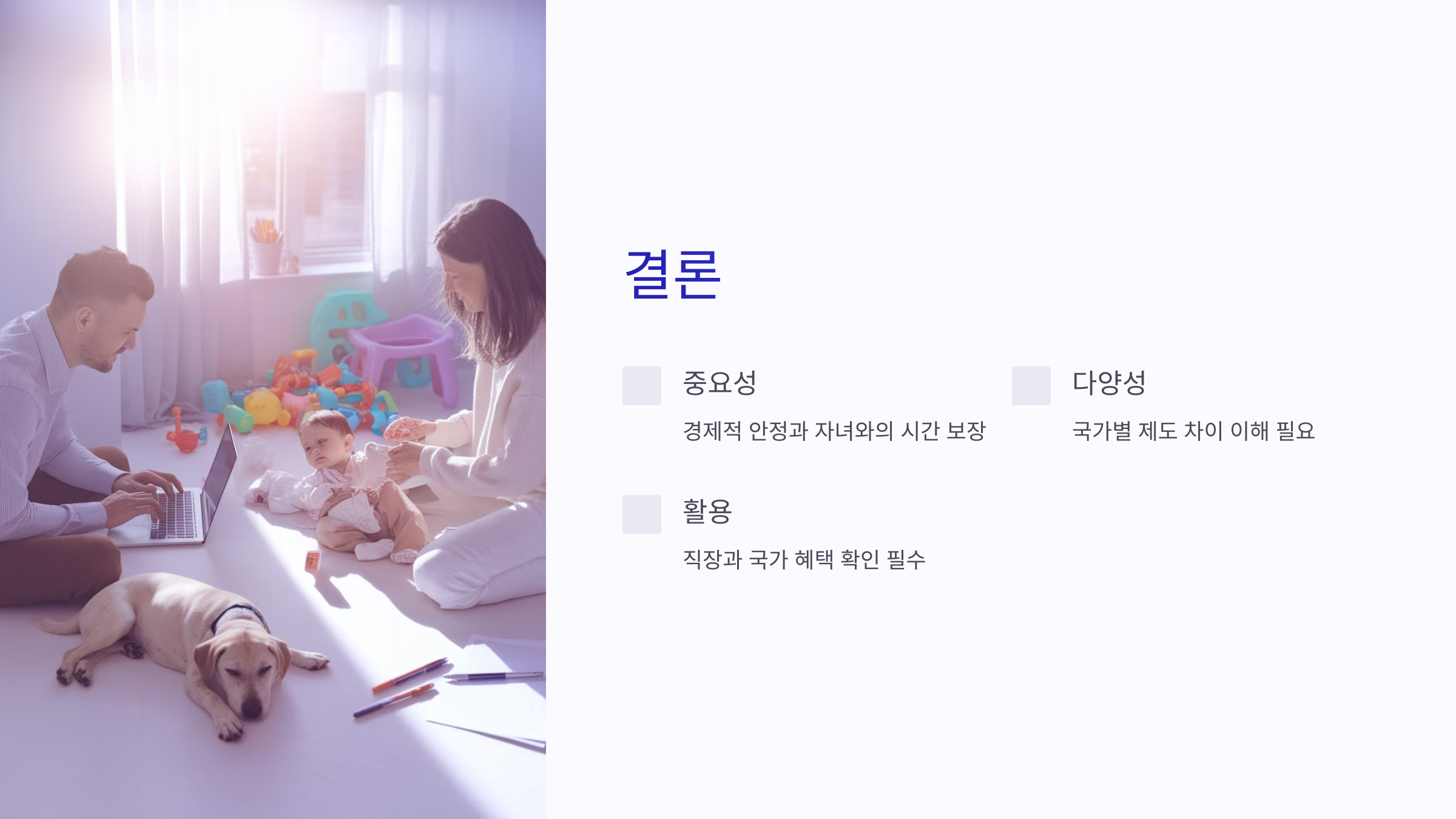 여러분의 직장과 국가가 제공하는 혜택을 꼭 확인해 보세요. 이를 통해 가족과 커리어 모두에서 성공적인 발판을 마련하시길 바랍니다. 😊