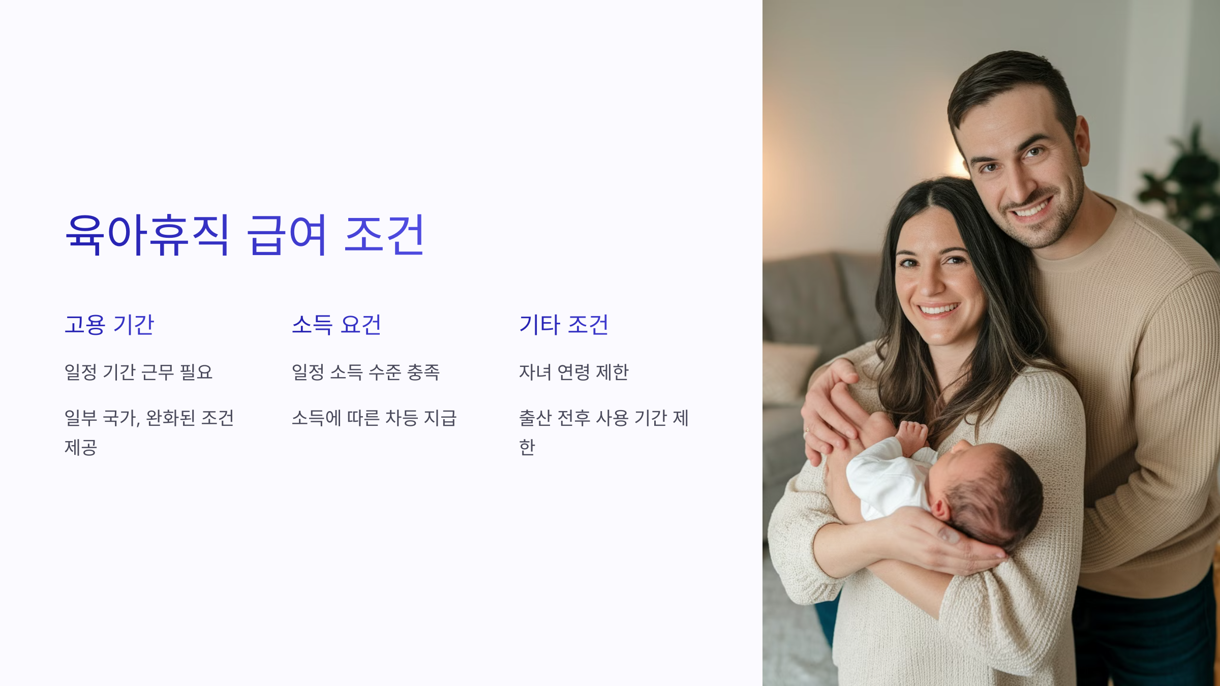 - 특이 사항: 부모가 휴직 기간을 나눠 사용할 수 있음