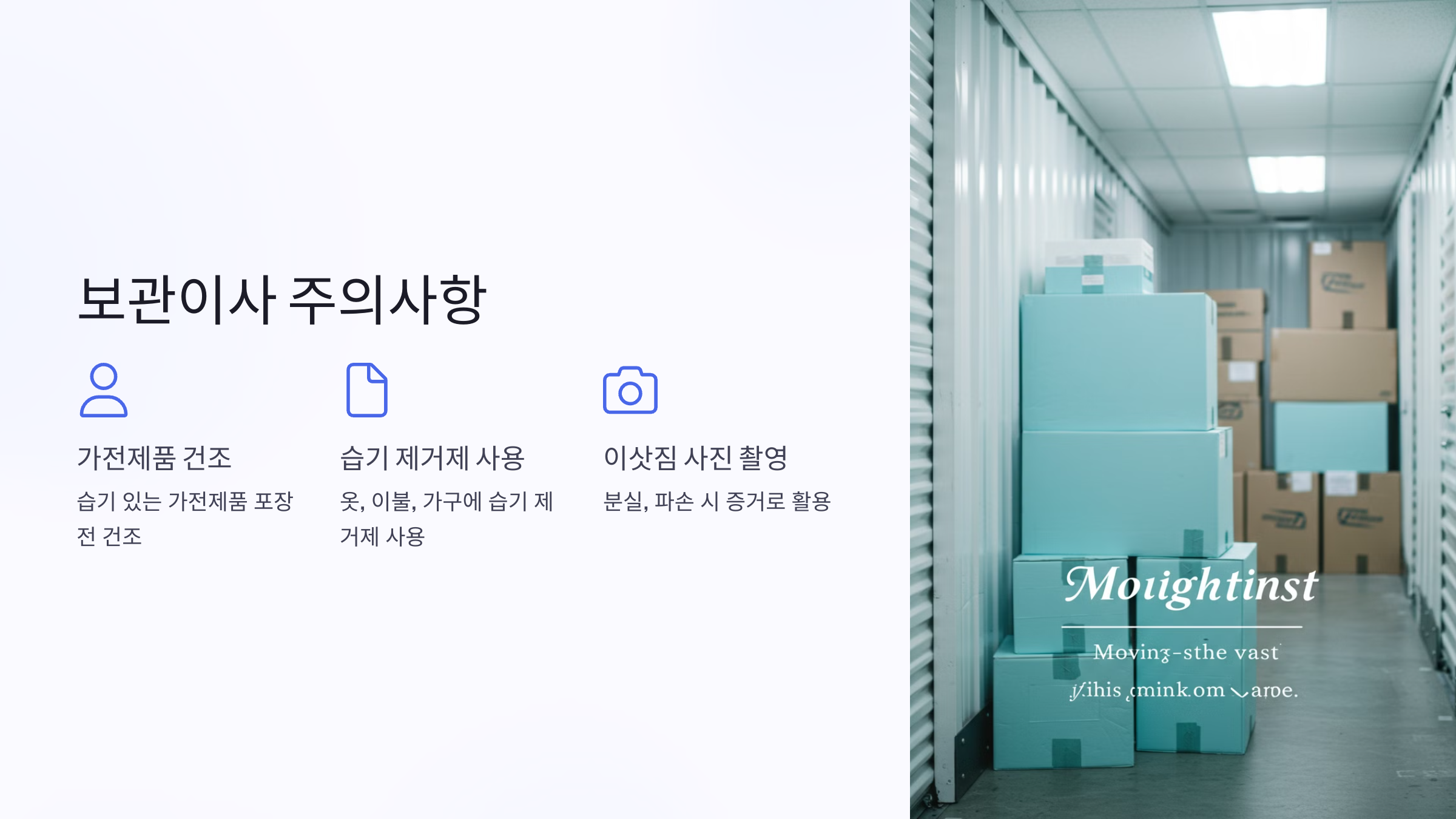 보관이사를 진행할 때는 다음과 같은 점들을 주의해야 합니다: