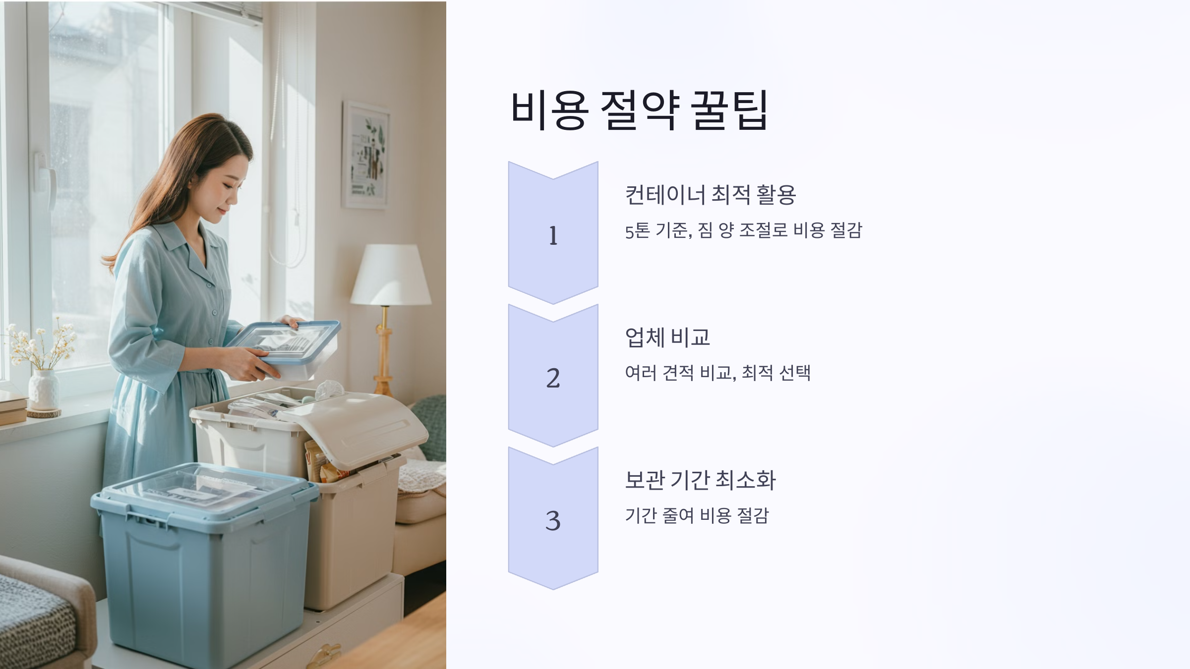 - 이사 비용: 기존 거주지에서 보관 장소로, 그리고 보관 장소에서 새로운 거주지로의 이사 비용이 각각 발생합니다.