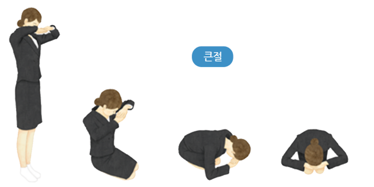 큰절하는 방법(출처: 보건복지부 e하늘 장사정보시스템)- 사진을 누르면 좀더 크게 볼수 있습니다.