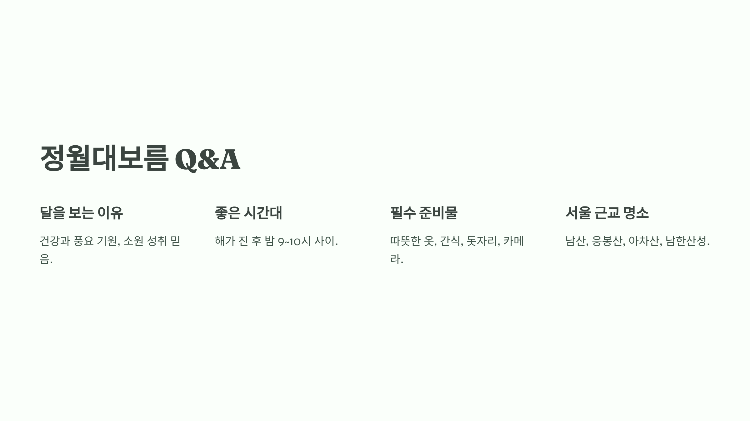 올해 정월대보름에는 새로운 명소를 찾아가거나, 전통적인 방법으로 달을 보며 한 해의 건강과 행운을 기원하는 것은 어떨까요?