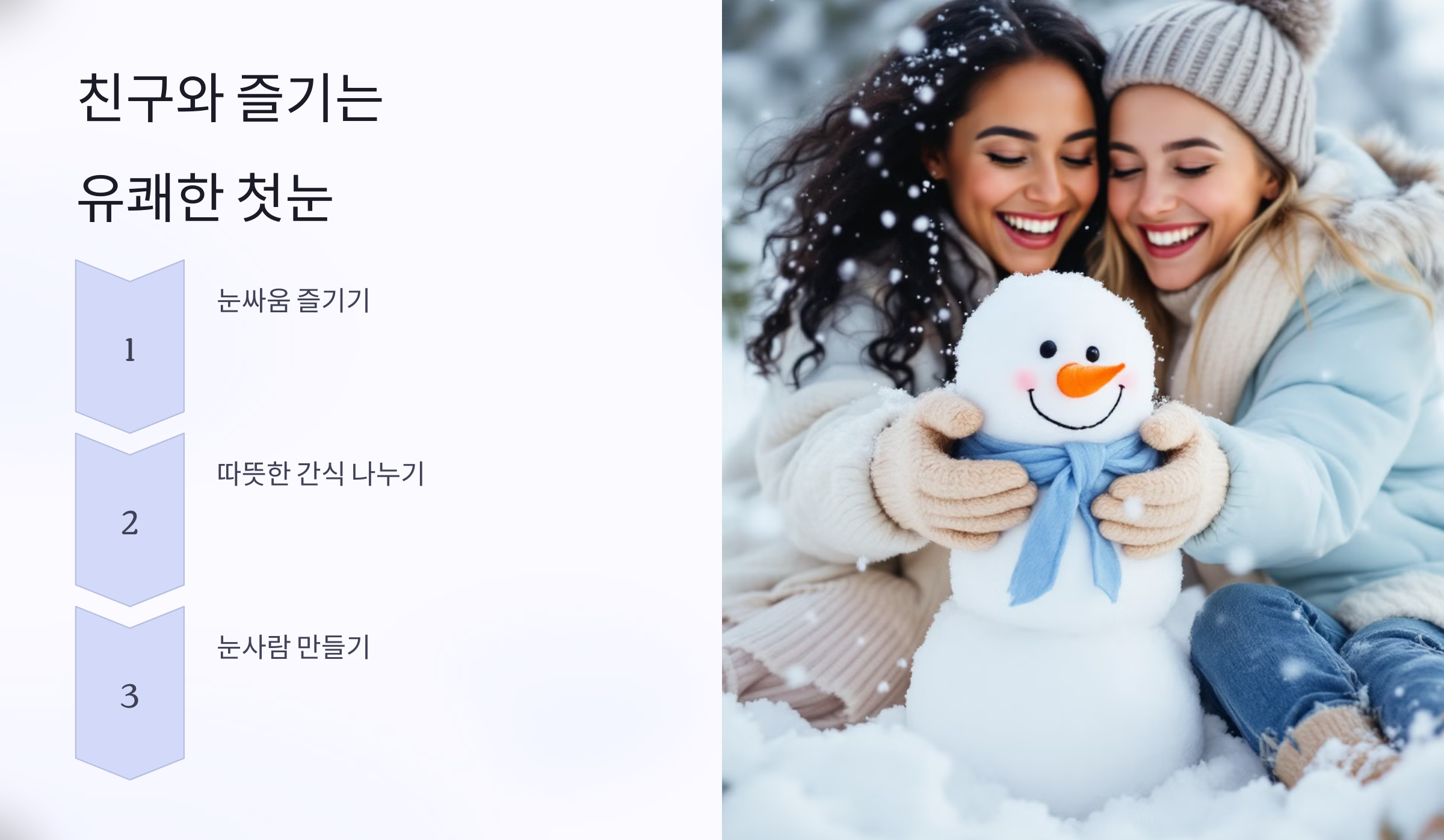친구와의 첫눈 날은 재미와 추억의 날입니다.