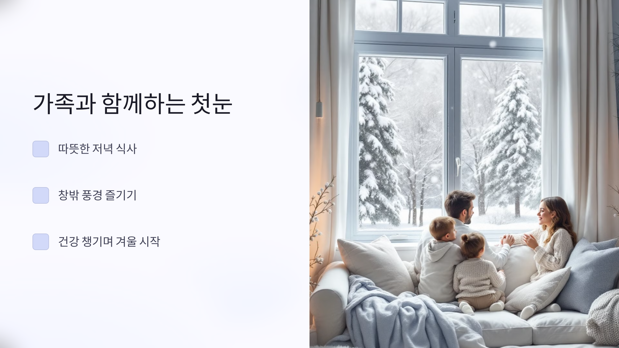 첫눈은 가족과 따뜻한 시간을 보내기 딱 좋은 날입니다.