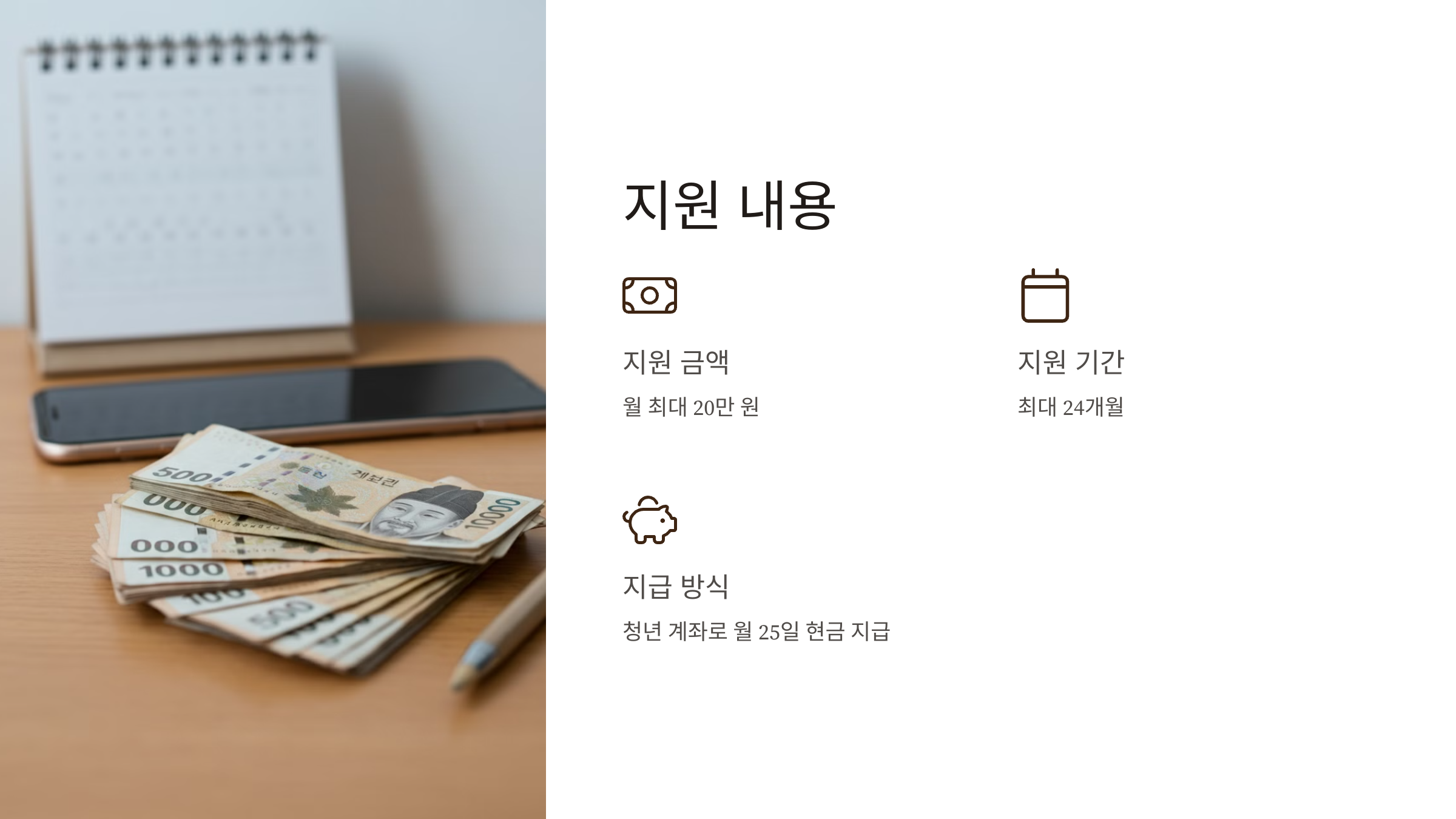 - 지급 방식: 청년 본인 계좌로 월 25일 현금 지급