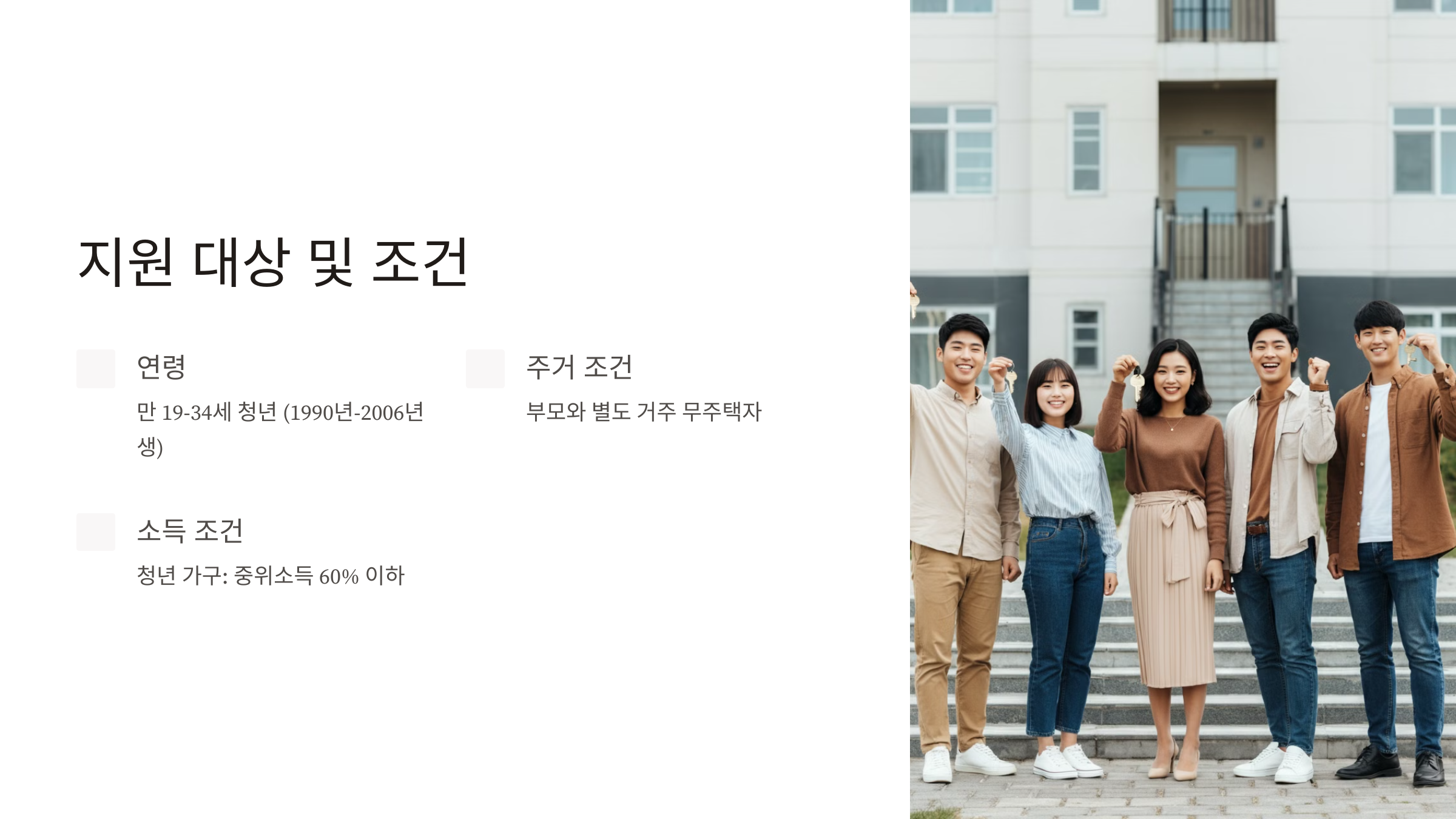 • 주거 조건: 부모님과 별도 거주하는 무주택자