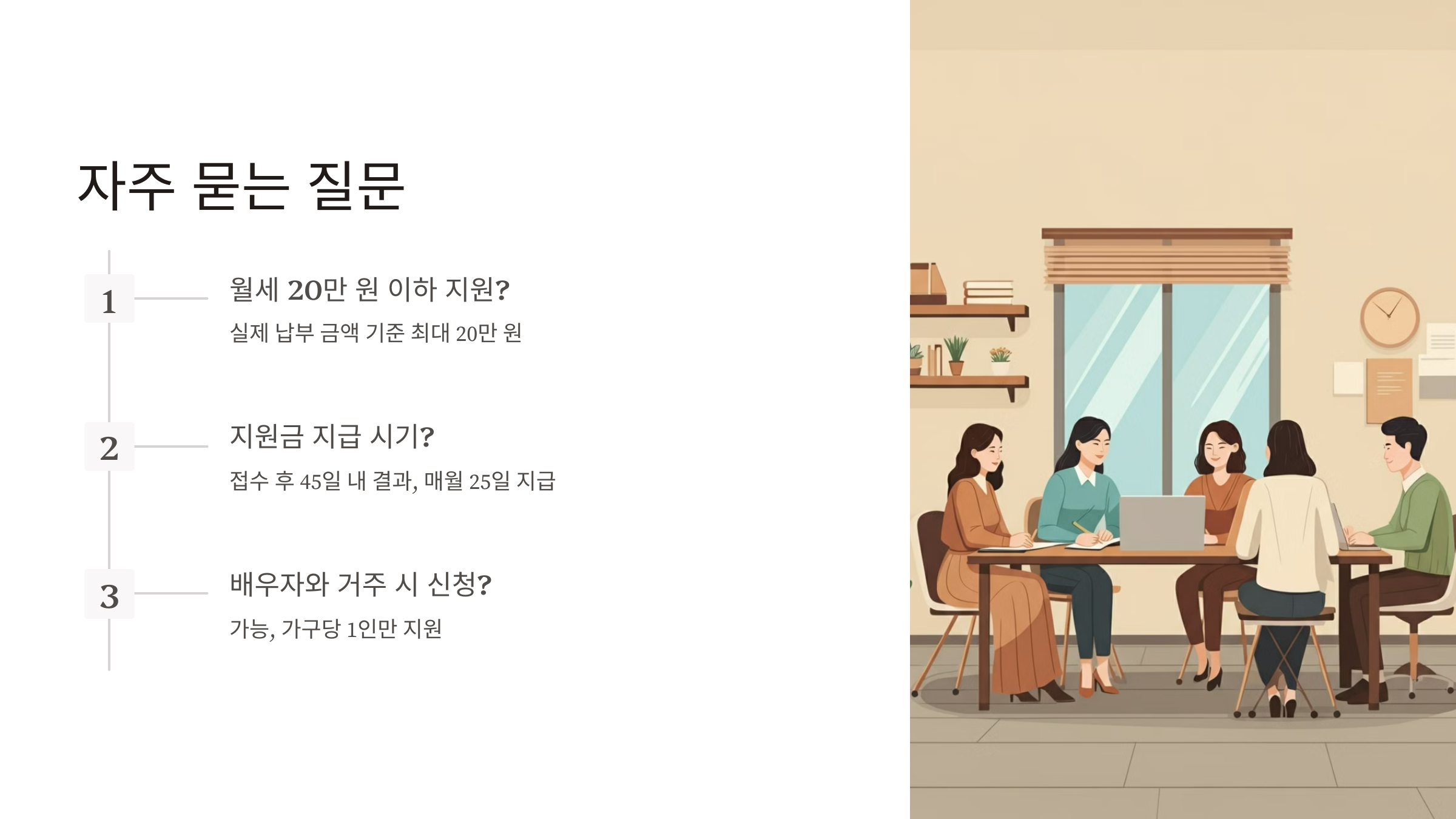 • 지원금 중복 신청 불가: 타 월세 지원 사업과 병행 불가