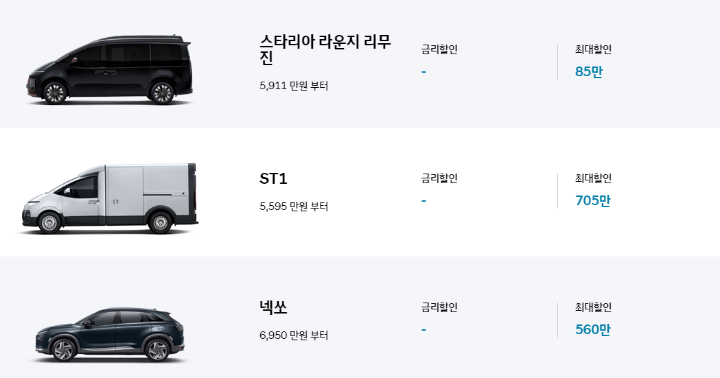 - 아이오닉 5, 아이오닉 6: 최대 500만 원 할인