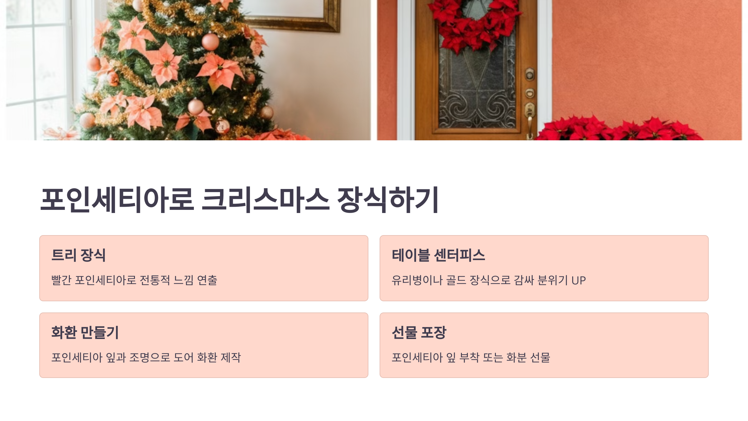 - 포인세티아를 활용한 테이블 장식은 연말 식탁을 더욱 빛나게 합니다.