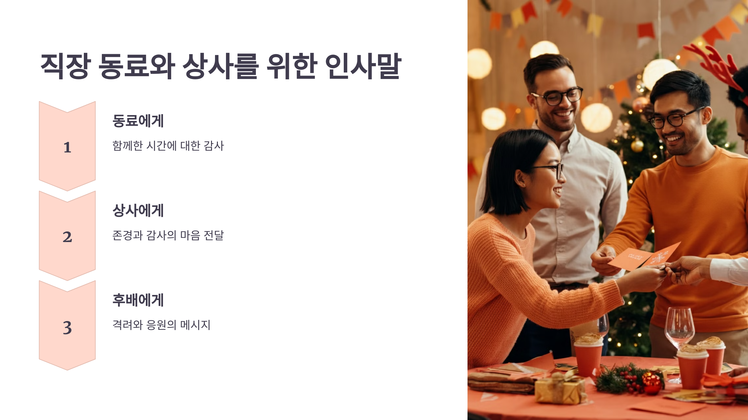 직장 동료와 상사를 위한 크리스마스 카드 인사말