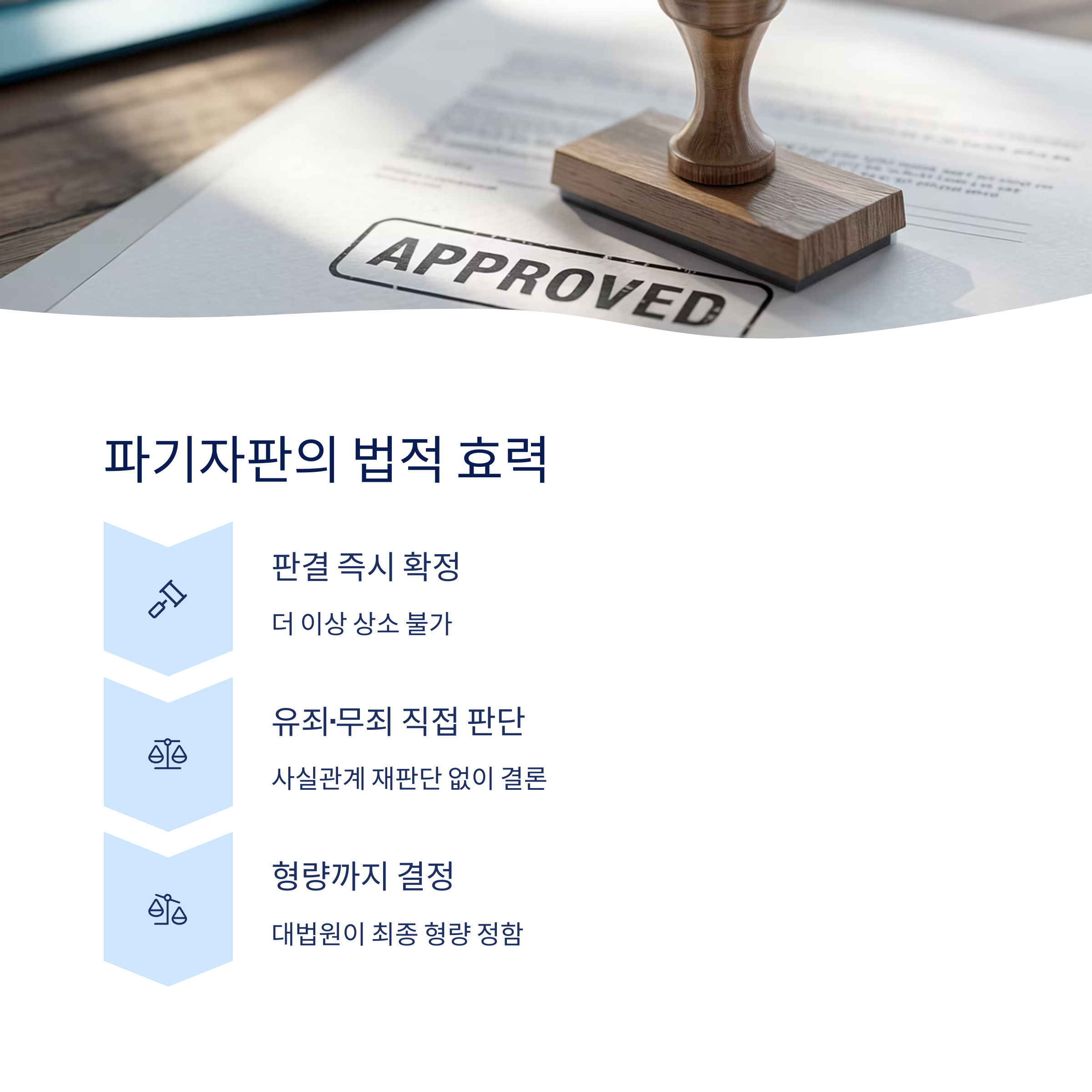 - 판결 즉시 확정: 더 이상 상소 불가(재심은 예외)