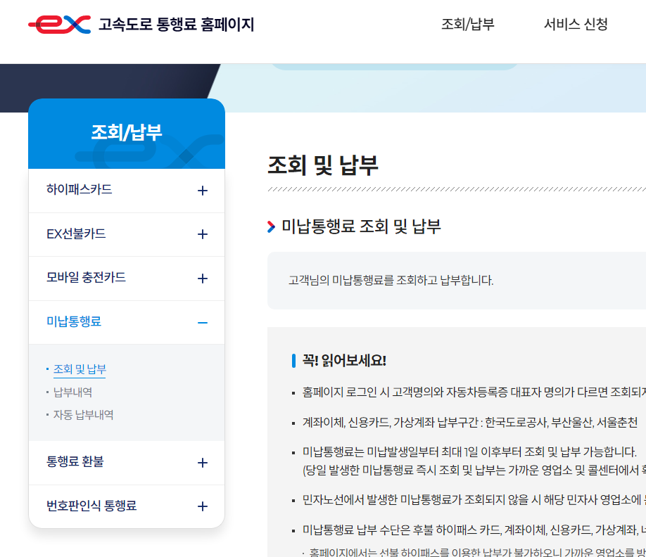 하이패스 미납 요금 납부하는 방법
