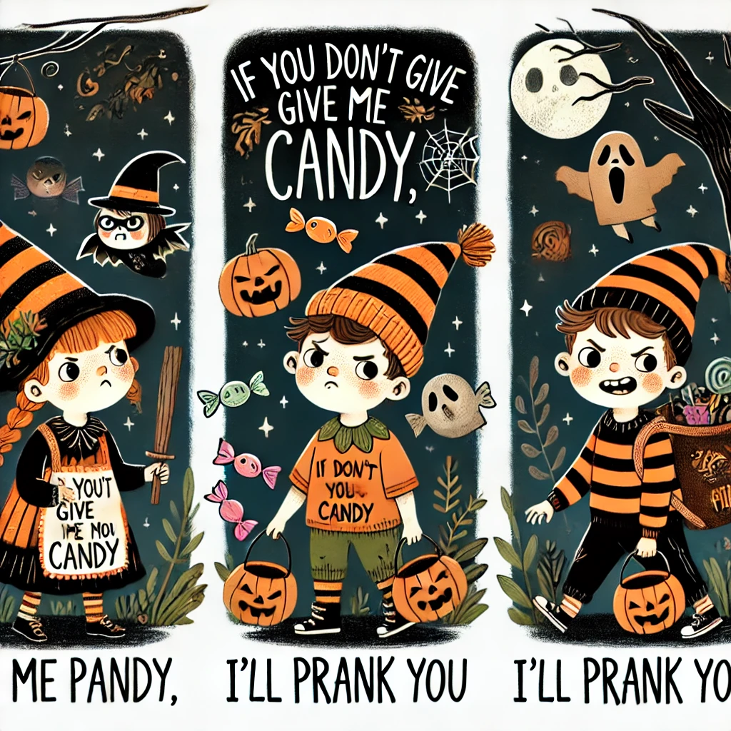 “Trick or Treat”는 할로윈 날 아이들이 외치는 인사말로, 사탕을 주지 않으면 장난을 치겠다는 의미입니다. 유럽의 축제에서 음식이나 선물을 위해 공연을 했던 전통에서 유래되었습니다.