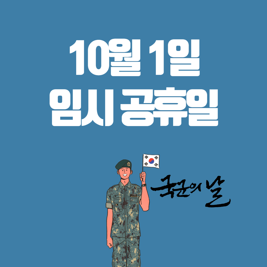 - 10월 1일 (화요일)이 임시 공휴일로 지정될 경우, 두 번째 휴일을 연달아 쉬게 됩니다. 이 날은 국군의 날로, 공휴일로 지정된다면 많은 사람들이 이 연휴를 활용하게 될 것입니다.