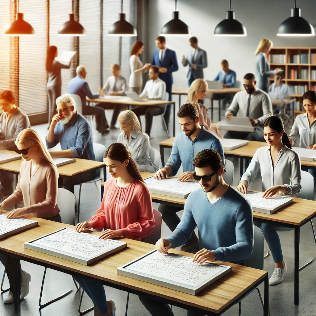 점자 능력은 시각 장애인의 취업 기회를 넓히고, 사회에 참여할 수 있도록 돕습니다. 점자를 통해 독립적으로 문서 작성이나 자료를 읽을 수 있어 사무직부터 전문직까지 다양한 직업에 종사할 수 있습니다. 또한 점자 시스템은 업무 효율성을 높여주며, 시각 장애인들이 사회의 중요한 구성원으로 기여할 수 있는 가능성을 제공합니다.