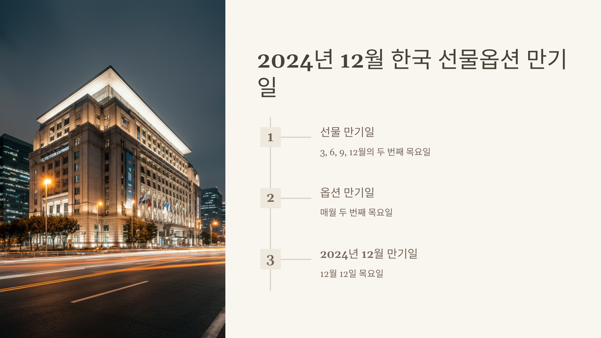 선물옵션 만기일은 주식 시장에서 중요한 변동성을 유발하는 시기로, 투자자들에게 특별한 주의가 요구됩니다. 2024년 12월에도 이러한 만기일이 예정되어 있어, 이에 대한 이해와 대비가 필요합니다.