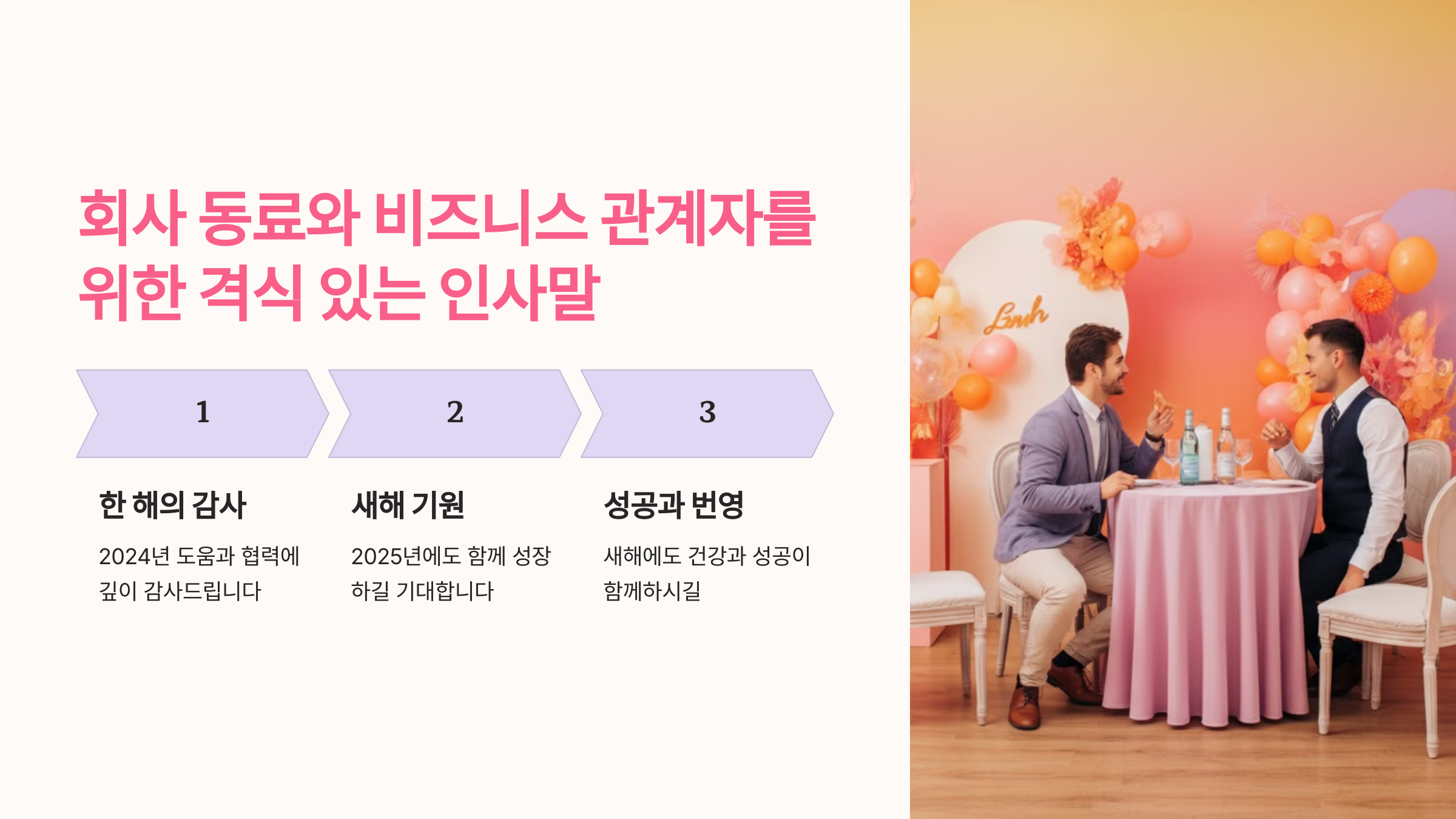 회사 동료와 비즈니스 관계자를 위한 격식 있는 인사말