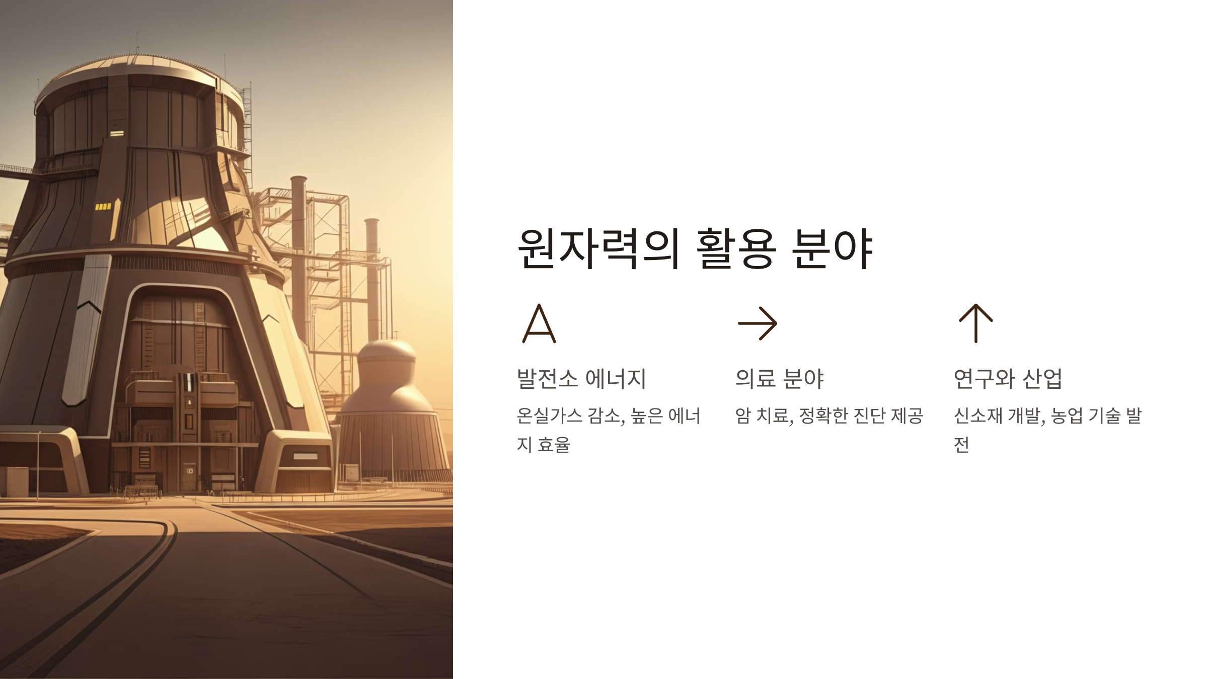원자력 발전은 화석연료보다 온실가스 배출이 적고, 안정적으로 대규모 에너지를 공급할 수 있습니다.